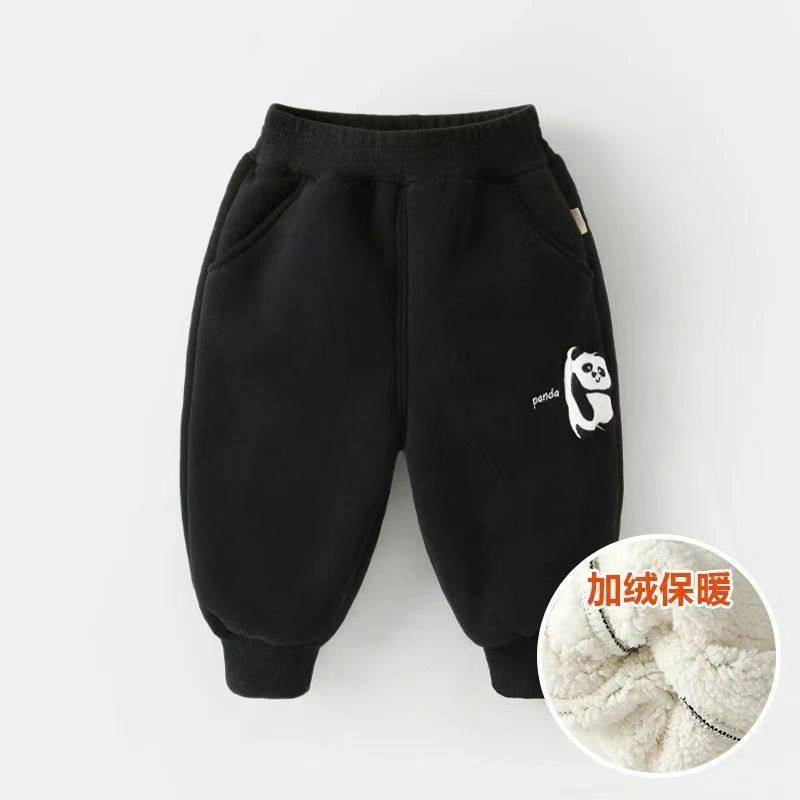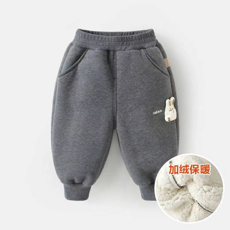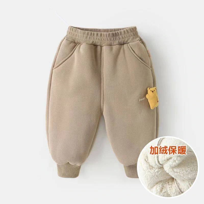Children's Fleece-Lined Sports Pants, Autumn and Winter Baby Winter Clothing, Casual Pants, Stylish Boys' and Girls' Thickened Cotton Pants