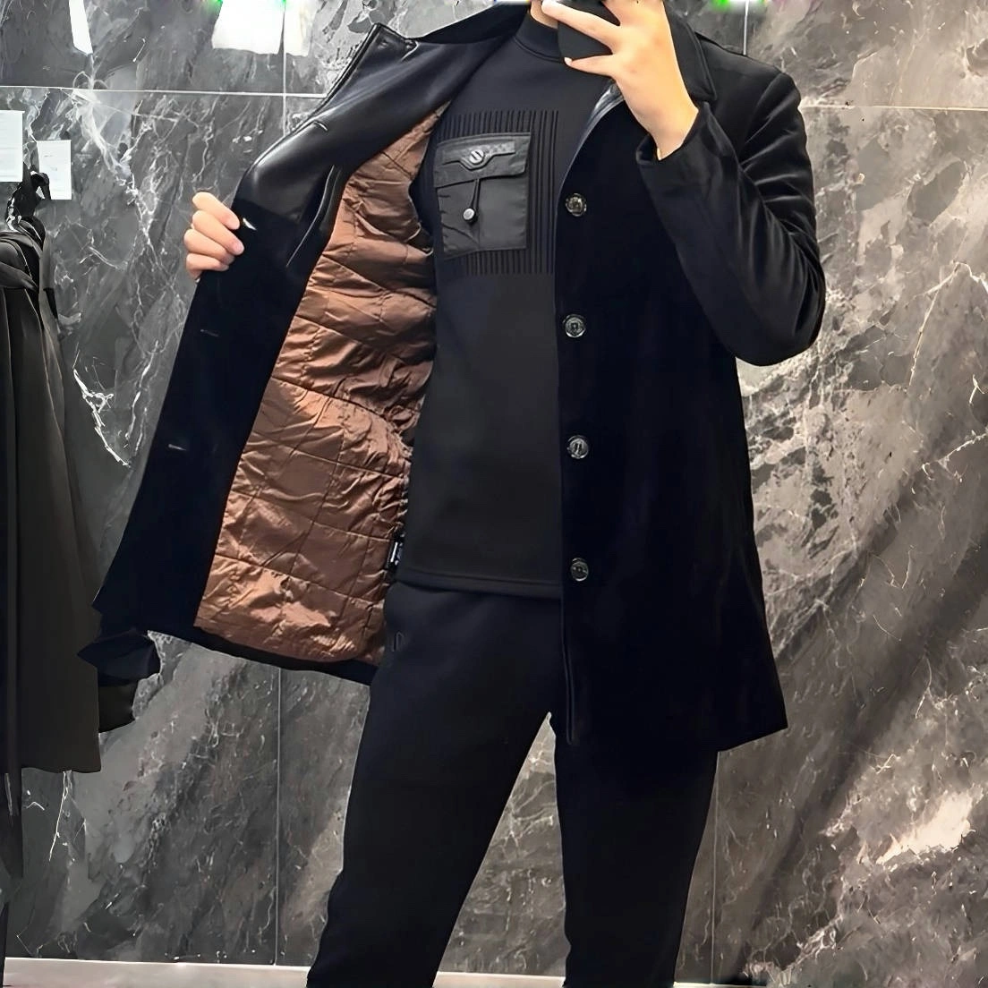 Men's Trench Coat 2025 Autumn and Winter New Style Light Luxury Business Black Velvet Comfortable Stylish Versatile Trendy