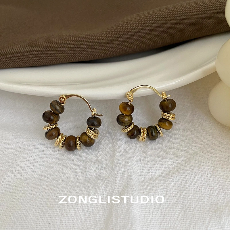 Zongli Autumn and Winter Retro Natural Tiger Eye Stone Beaded Earrings Maillard Temperament Earrings Light Luxury High-End Earrings
