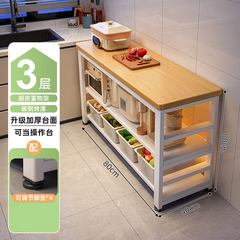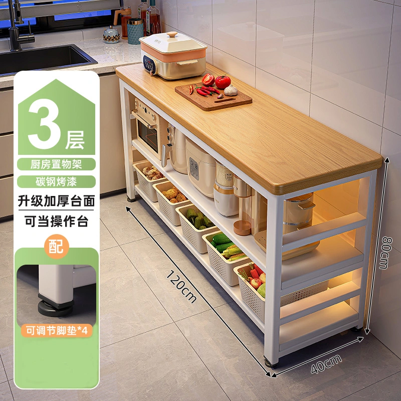 Kitchen Rack Floor-Standing Multi-Functional Vegetable Cutting Table Household Multi-Layer Microwave Pot Storage Cabinet Narrow Side Cabinet