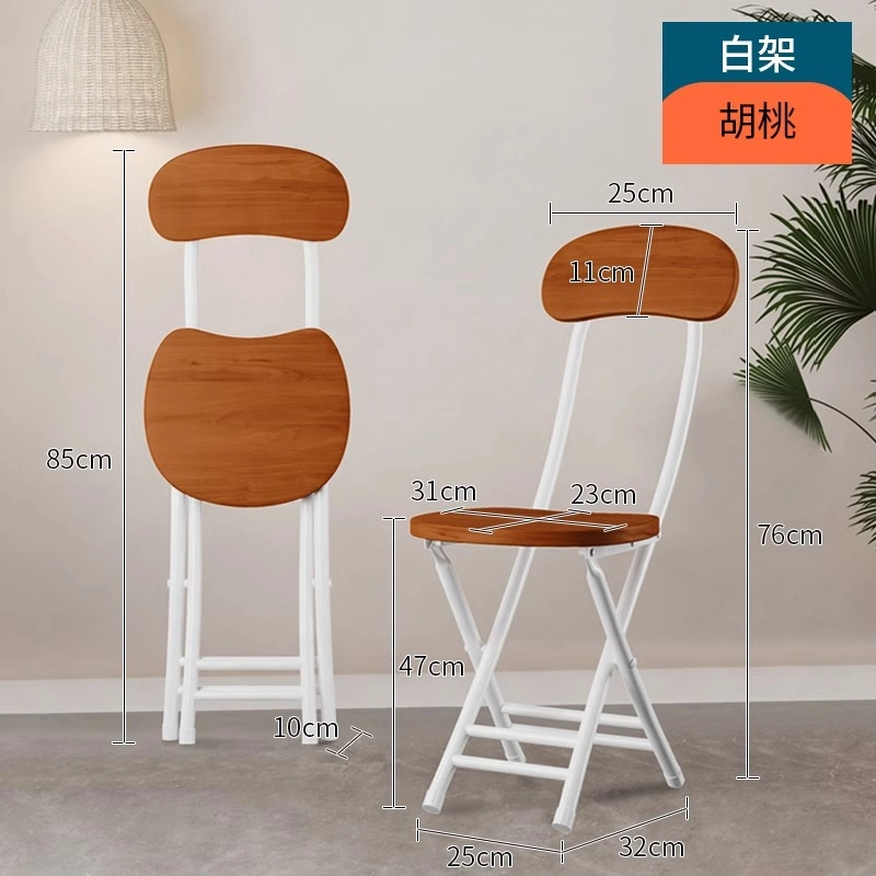 Folding Chair, Home-Use Backrest Chair, Dining Chair, Portable Round Stool, Stackable Bench, Space-Saving Dining Table Stool