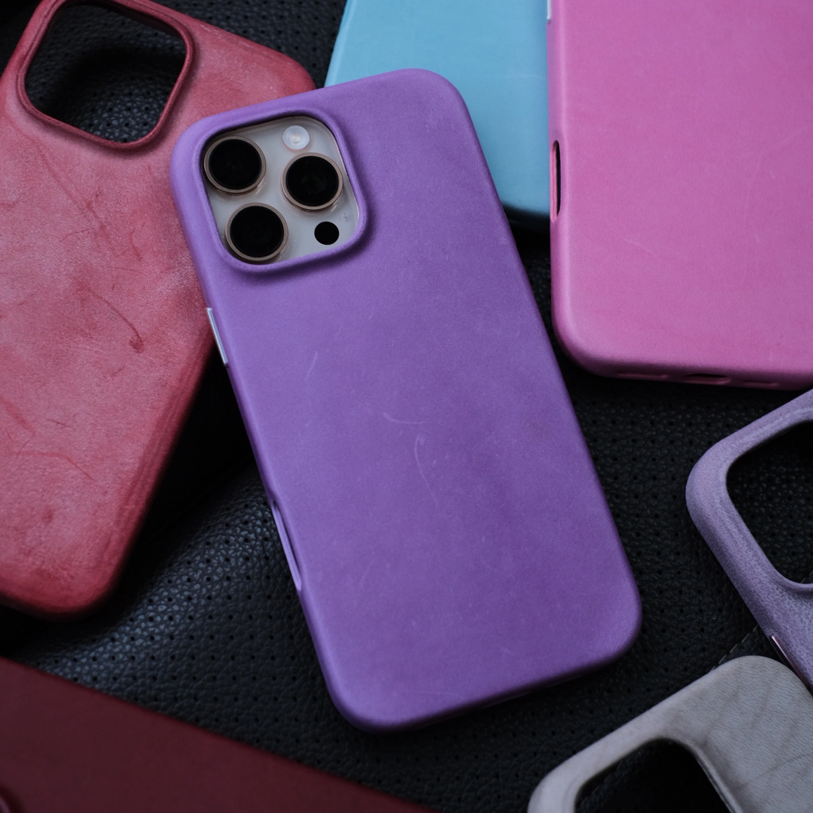 Suitable for iPhone 16 Pro Max Phone Case, Multi-Color Solid Color Leather, Cowhide, Genuine Leather, Full-Cover Magnetic Phone Case