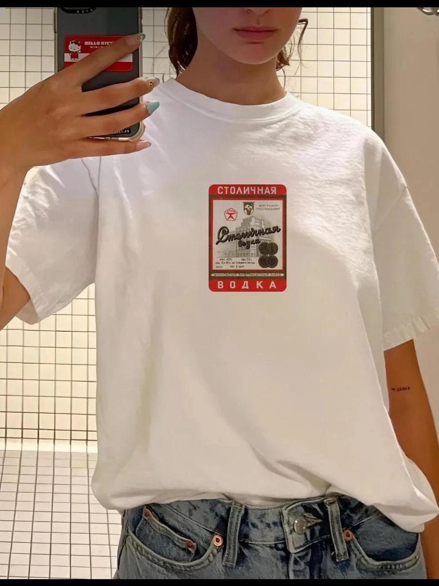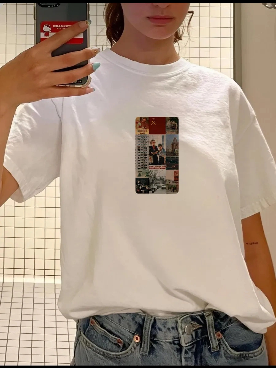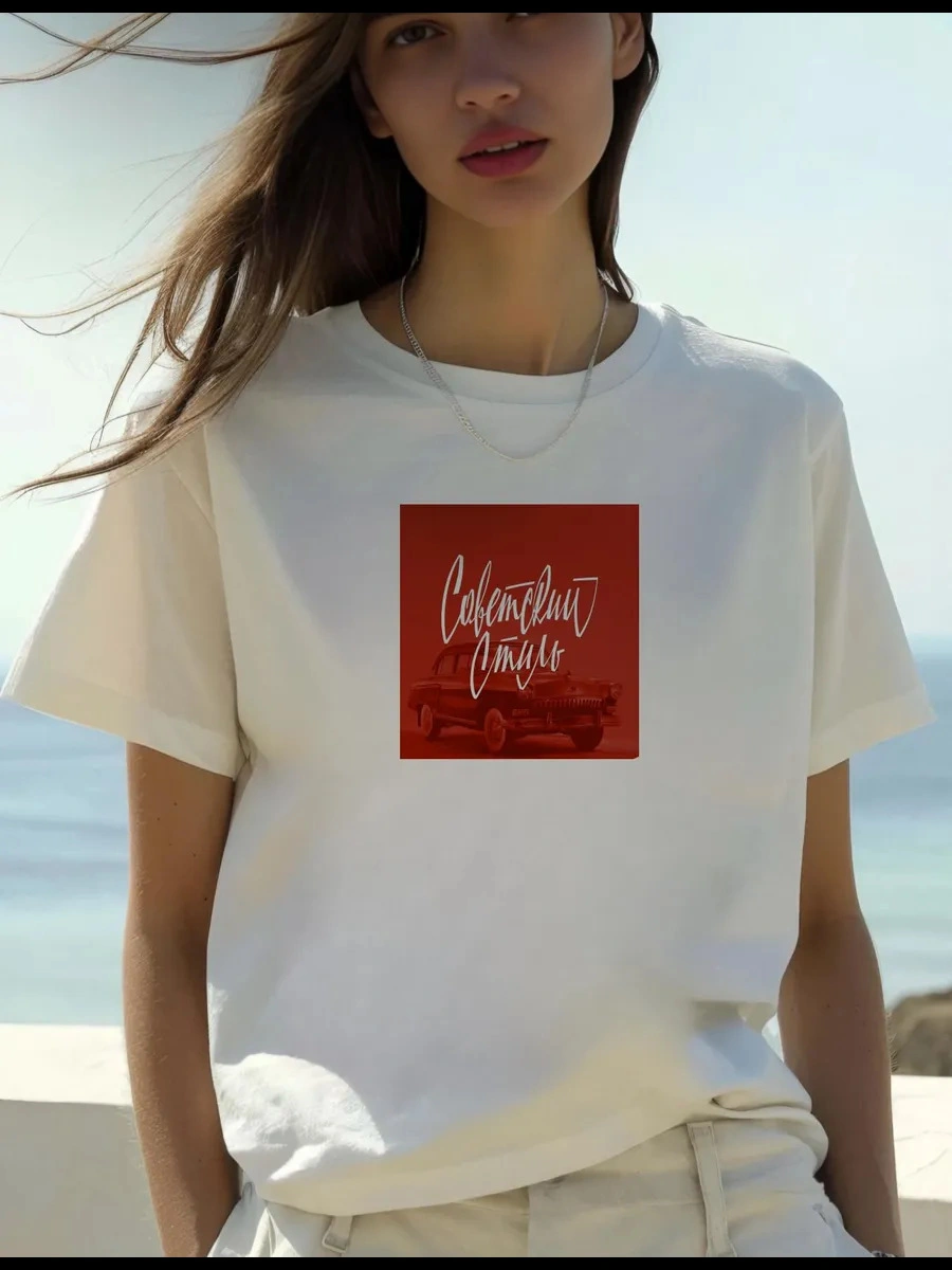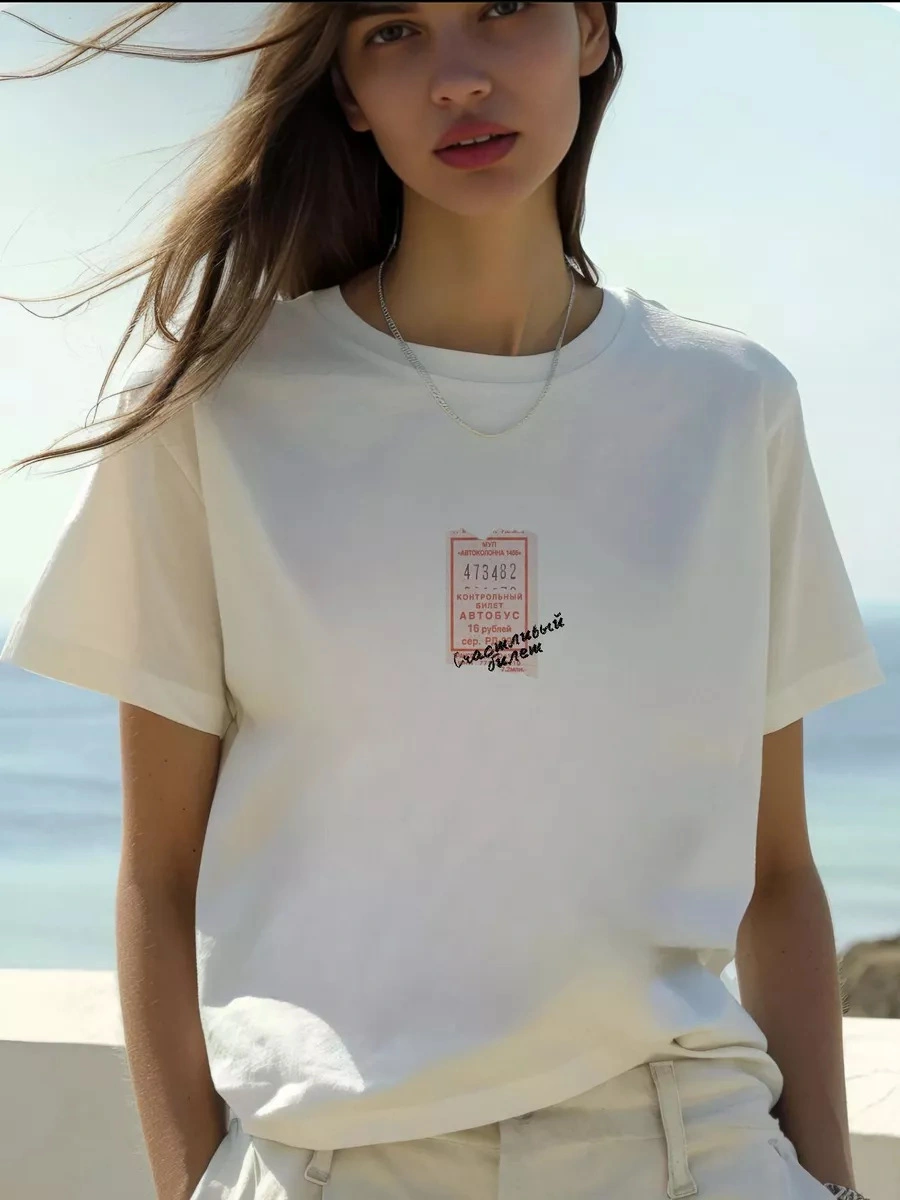 Pure Cotton Simple Printed Versatile Short-Sleeve T-Shirt Loose Printed Loose Pullover