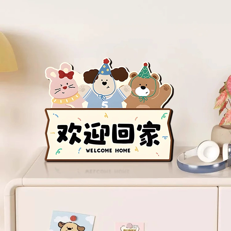 Welcome Home Entrance Decoration Ornaments Cartoon Cute Entryway Living Room Display Painting High-End Bedroom Room Painting