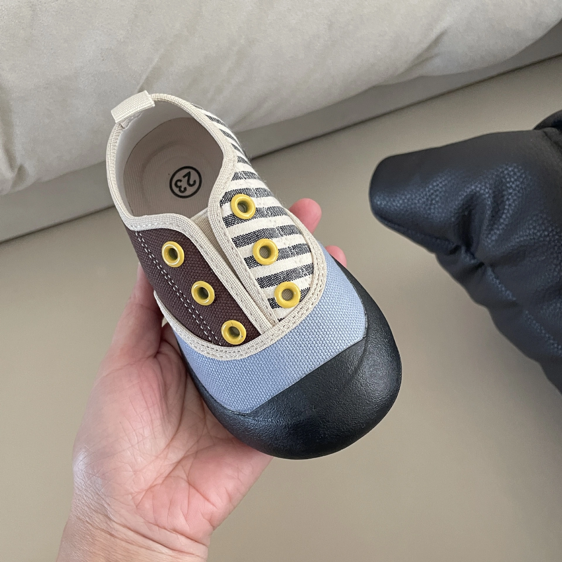 2025 Children's Color-Block Patchwork Sneakers Slip-On Cloth Shoes Soft Sole Comfortable Boys and Girls Cloth Shoes Kindergarten Shoes