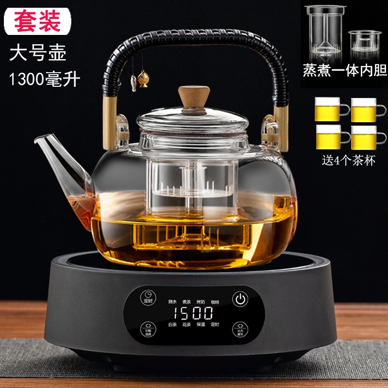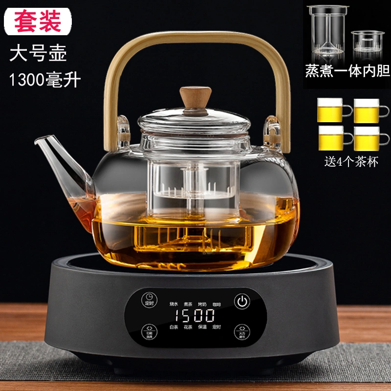 2025 New Model Electric Ceramic Stove with Fan, Tea Maker, Steaming and Cooking All-In-One, High Borosilicate Glass Tea Brewing Set