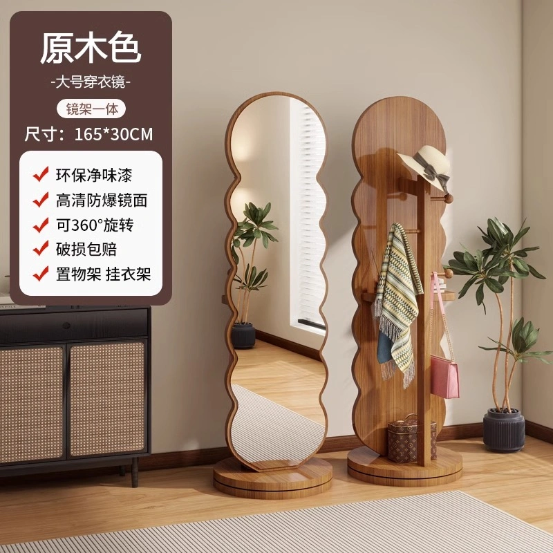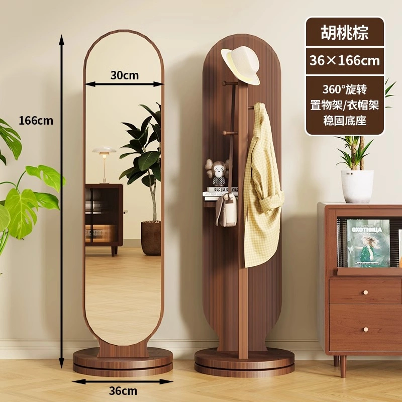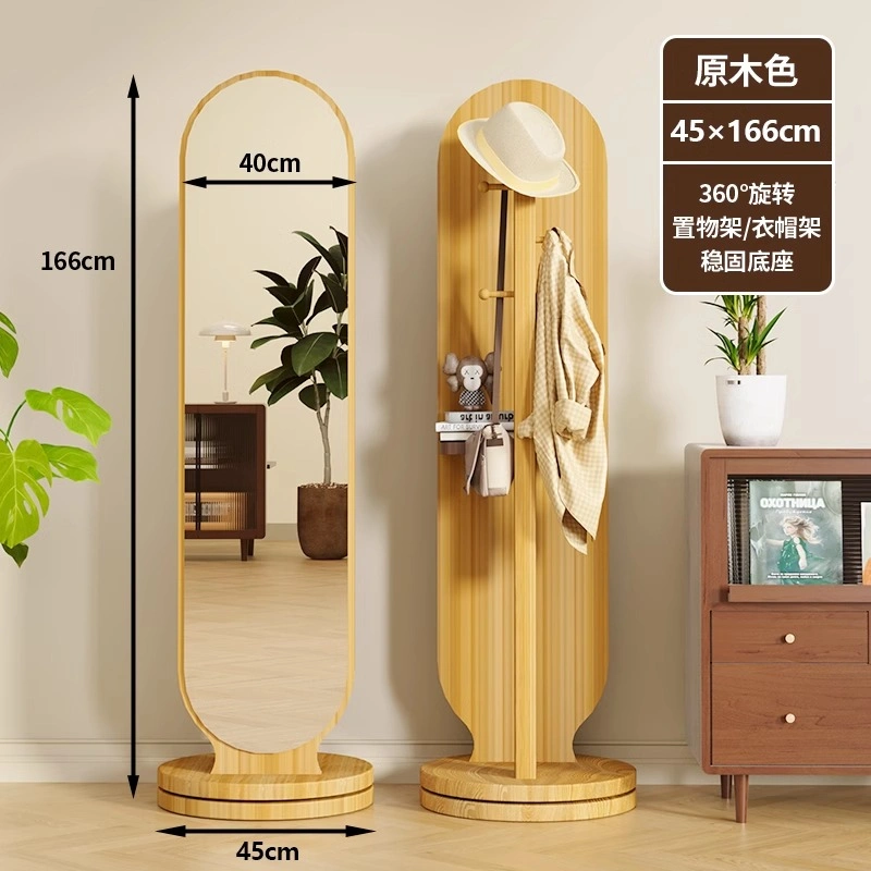 Rotating Dressing Mirror and Clothes Hanger Integrated Home Fitting Mirror Bedroom Coat Rack Full-Length Mirror Storage Rack Floor-Standing Mirror