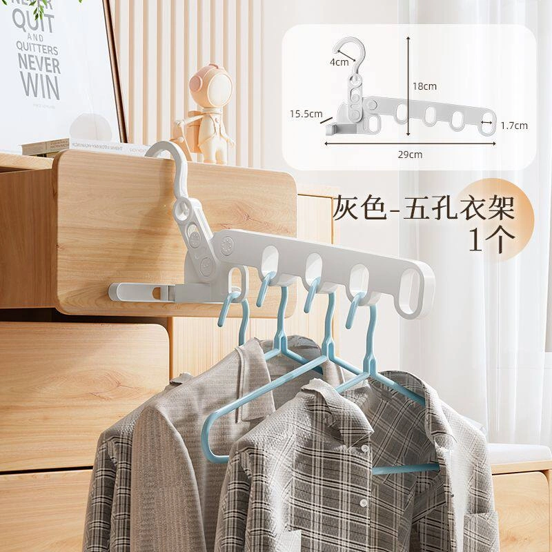 Five-Hole Folding Clothes Hanger with Multiple Hooks, New 2024 Popular Model, Household Clothes Hanger, Thickened and Enlarged, Space-Saving