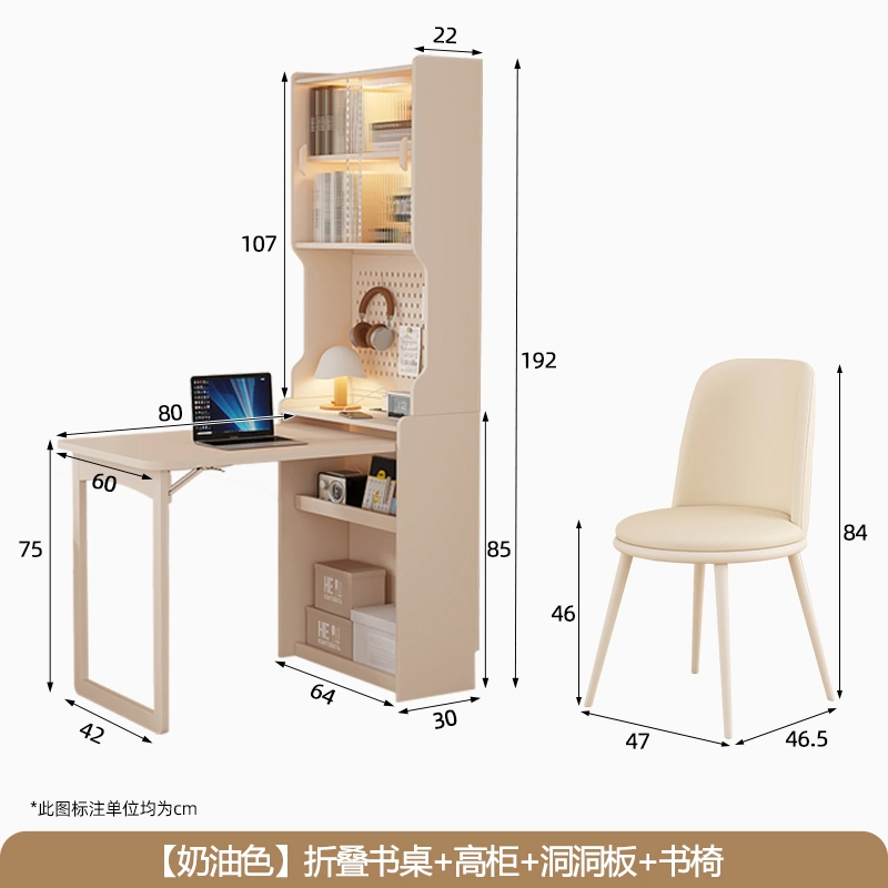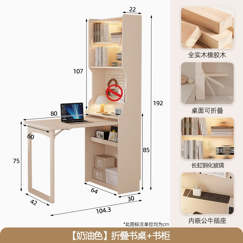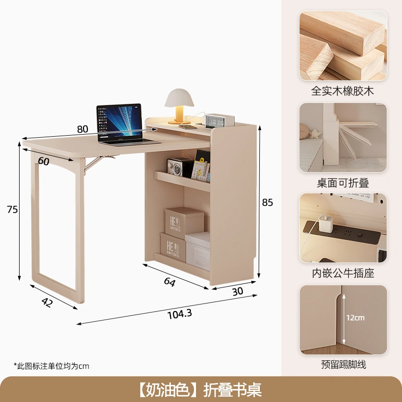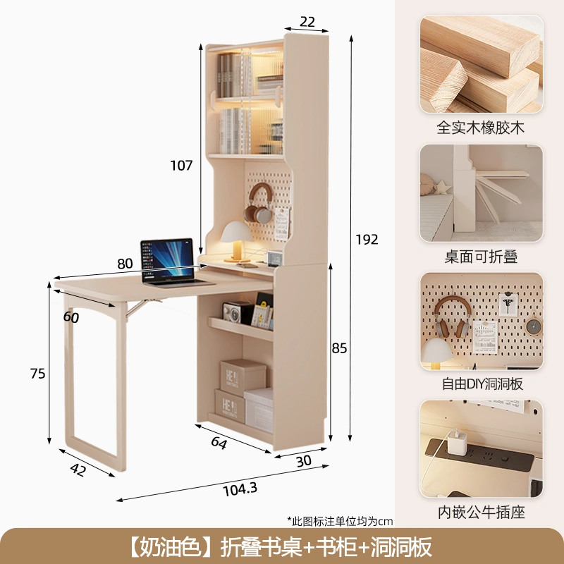 Solid Wood Folding Desk Small Apartment Bookcase Bookshelf Integrated Home Corner Computer Table Bedroom Study Table