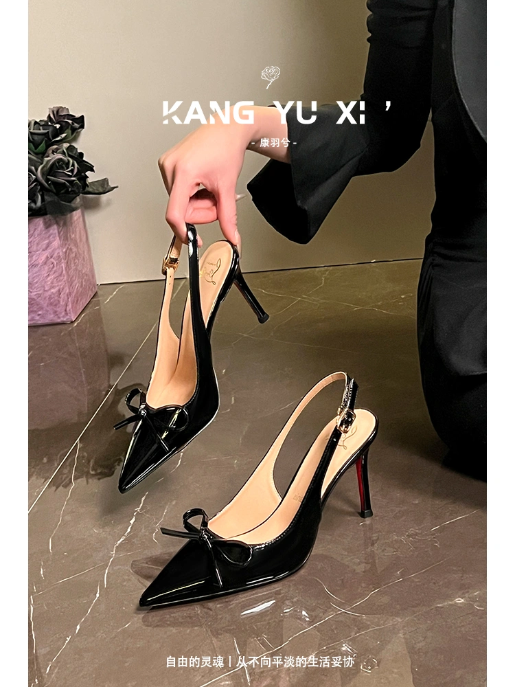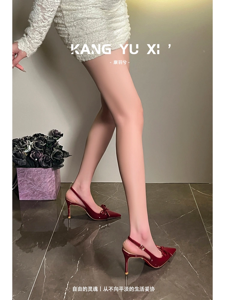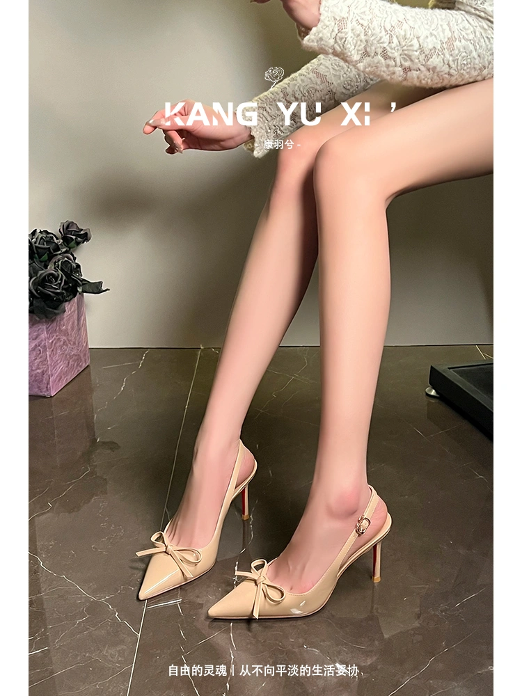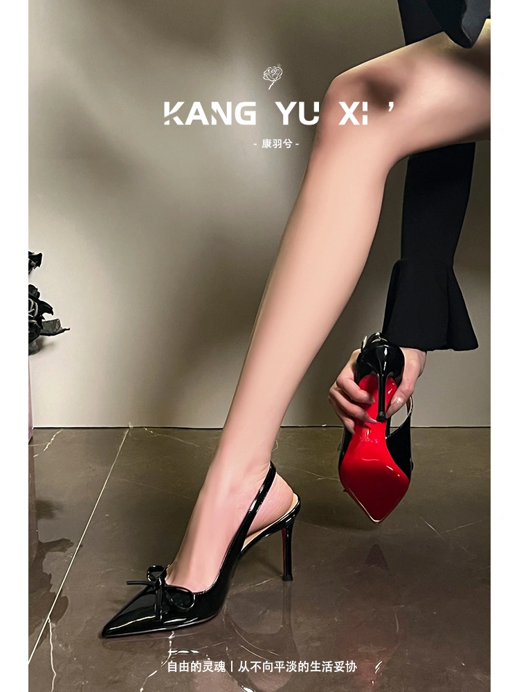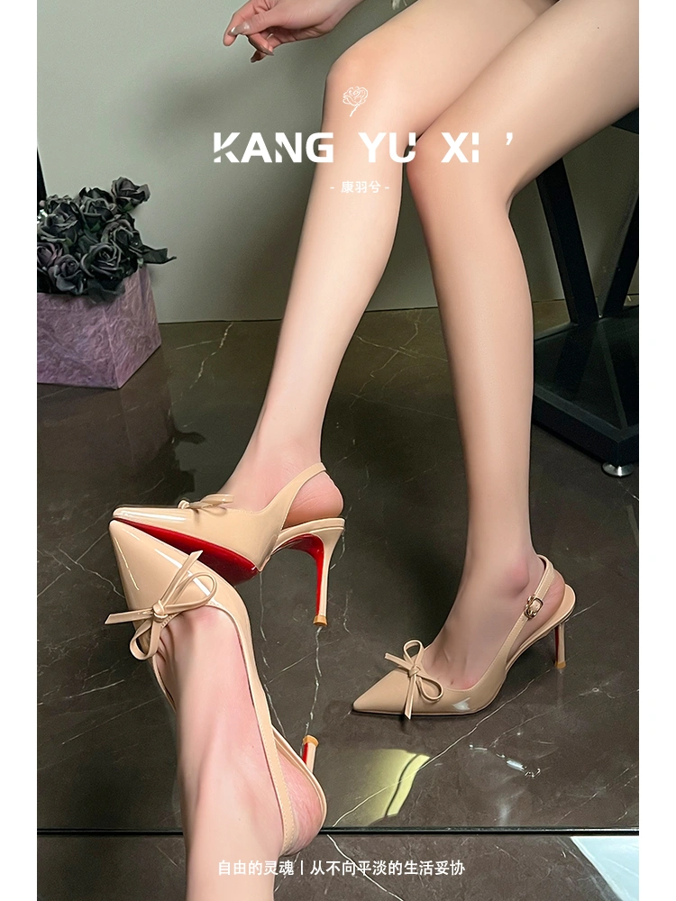 Nude Red-Soled High-Heeled Shoes for Women, New Style, Stunning and Elegant, with a Single Strap, Patent Leather, Shallow Mouth, Sexy Stiletto Heels, Backless Sandals
