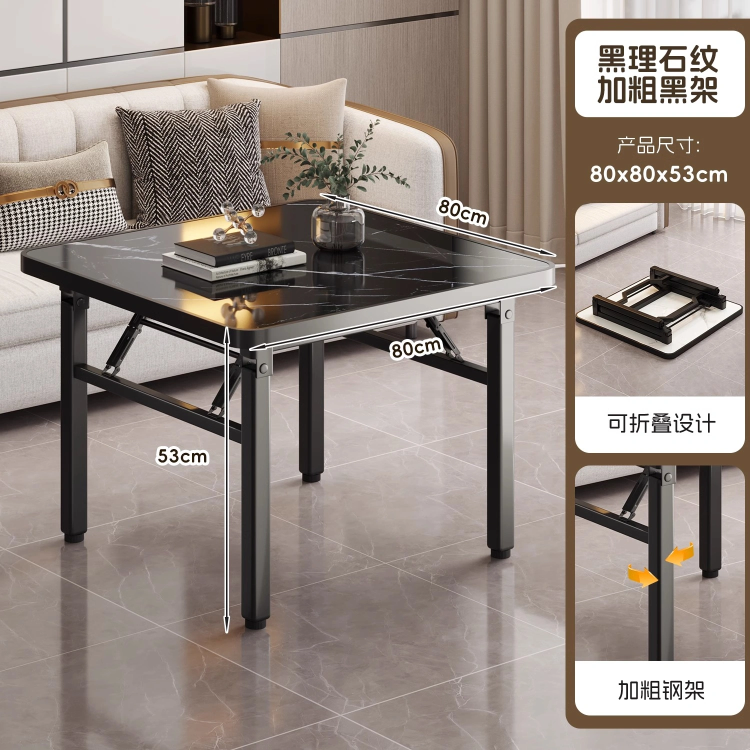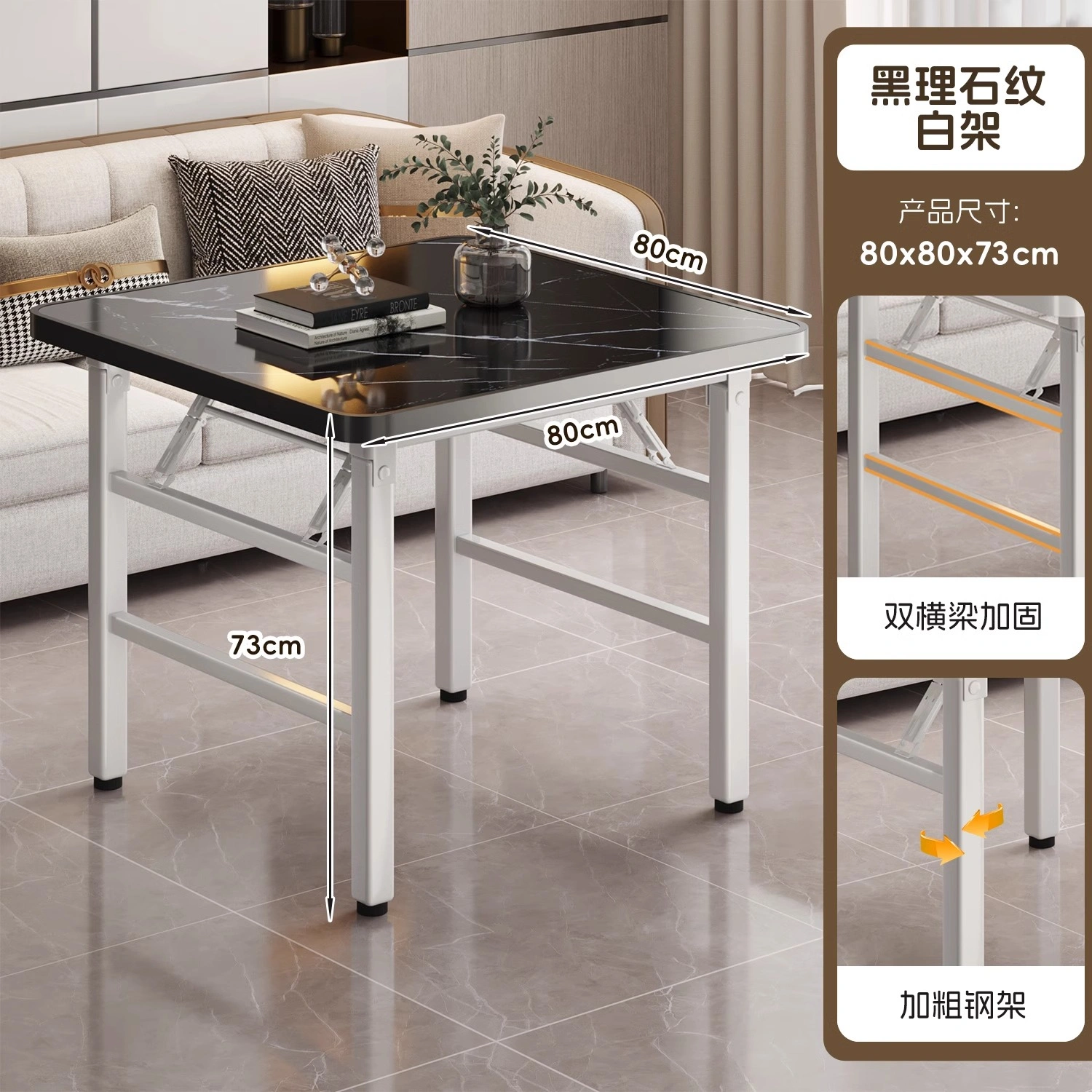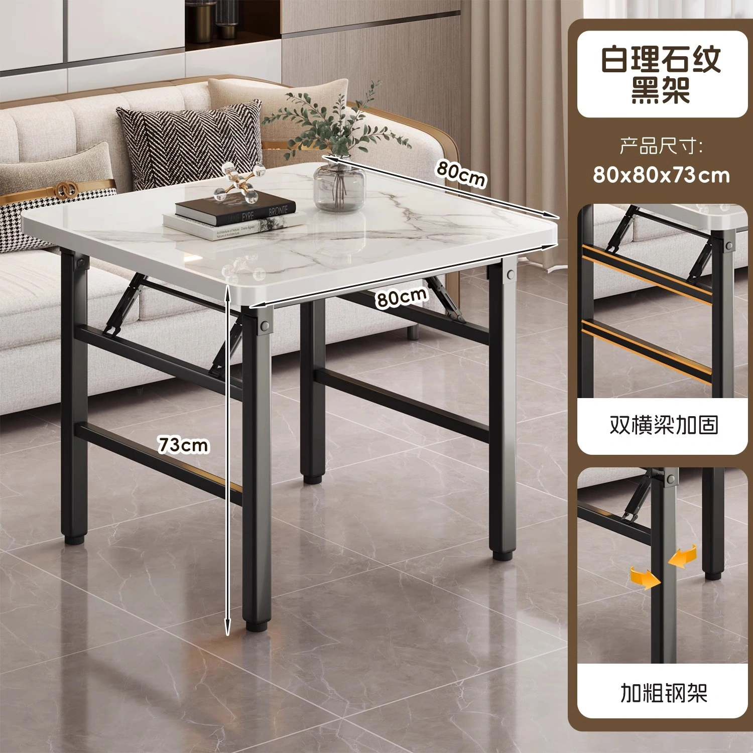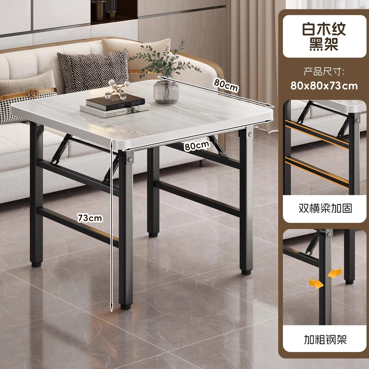 Folding Table for Home Use, Simple Fire Pit Table, Camping Square Dining Table, Portable Small Apartment Stall Square Table