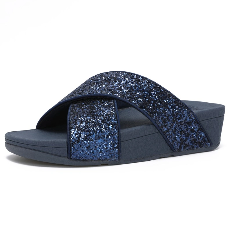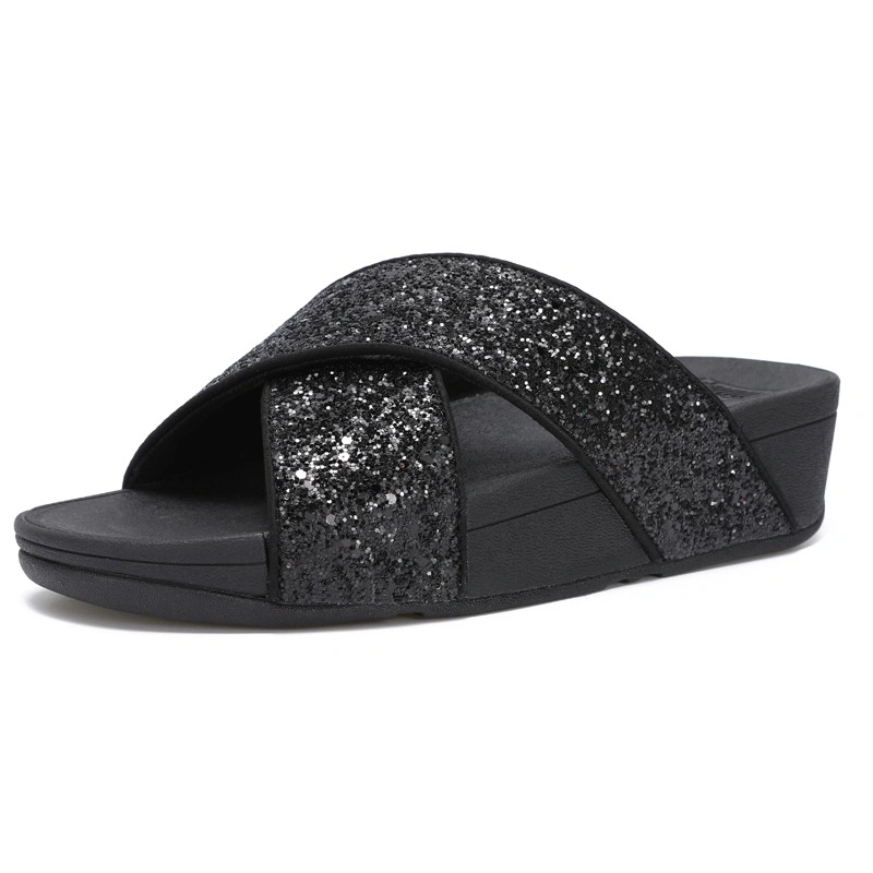 Fitflop Women's New Summer Genuine Leather Cross-Strap Sandals, Fashionable and Versatile for Outdoor Wear, Casual Slip-On Thick-Soled Slippers