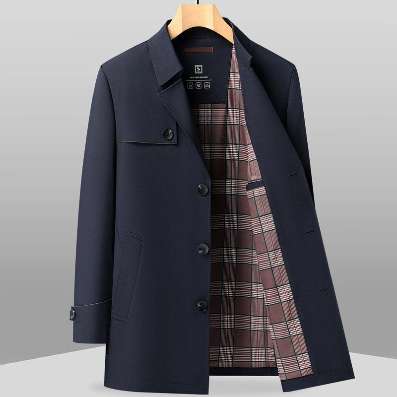 2025 New Spring and Autumn Trench Coat Jacket for Men, Mid-Length Business Casual Suit Collar Jacket for Middle-Aged and Elderly Men, Dad's Jacket