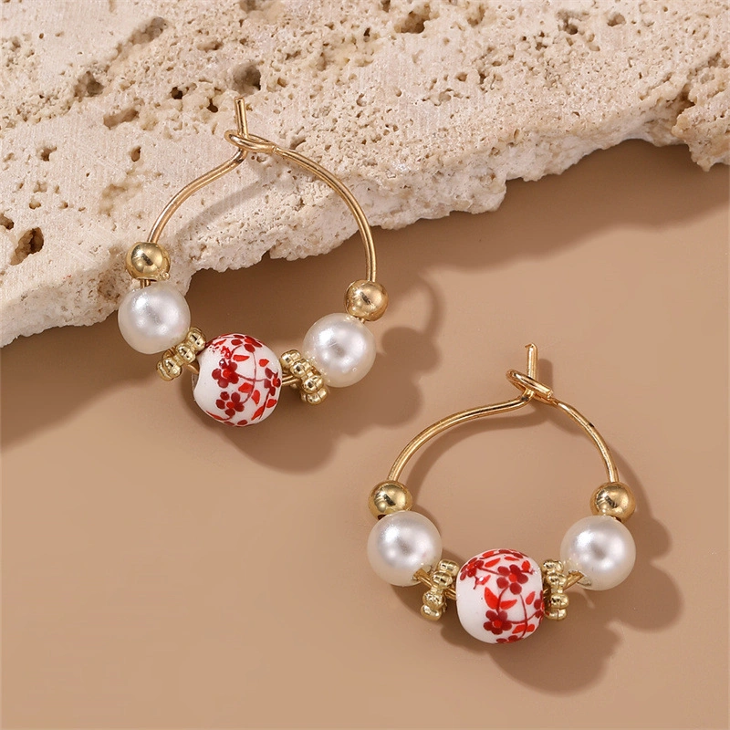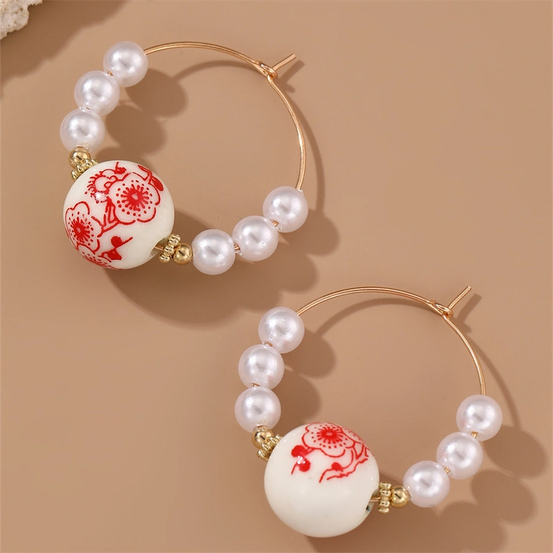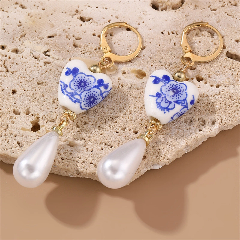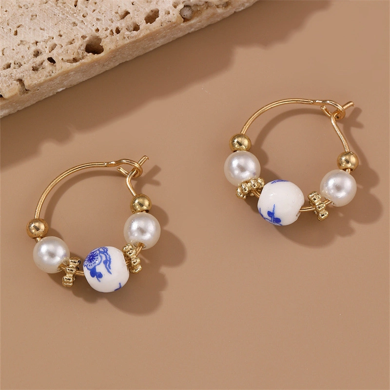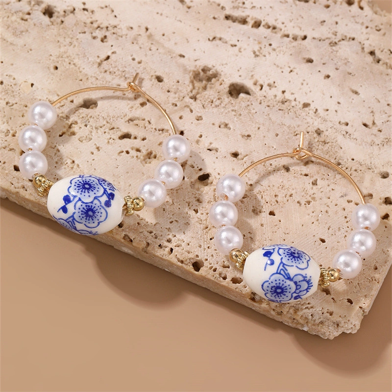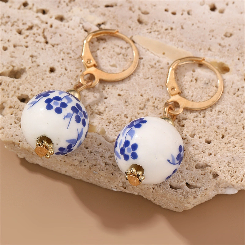 Retro Chinese Style Jewelry Fashion Pearl Blue and White Porcelain Women's Earrings Normcore Elegant Blue Ceramic Earrings Earrings
