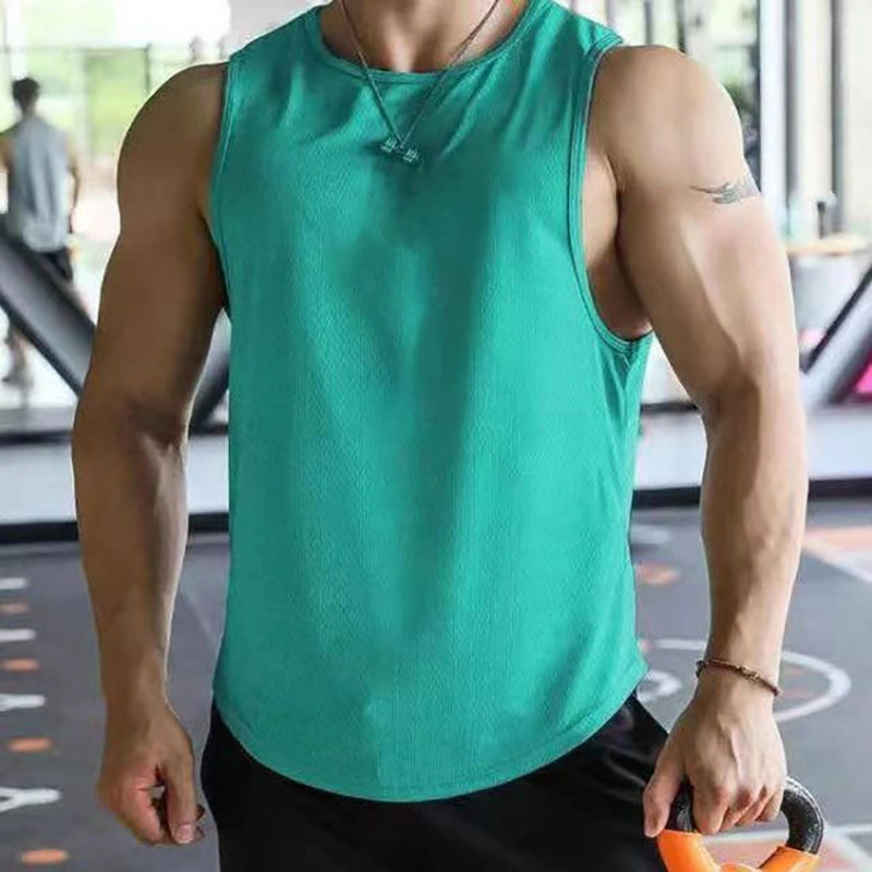 2025 Summer Sports and Leisure Muscle Fitness Mesh Breathable Quick-Drying Solid Color Sleeveless Vest for Men Men's Vest