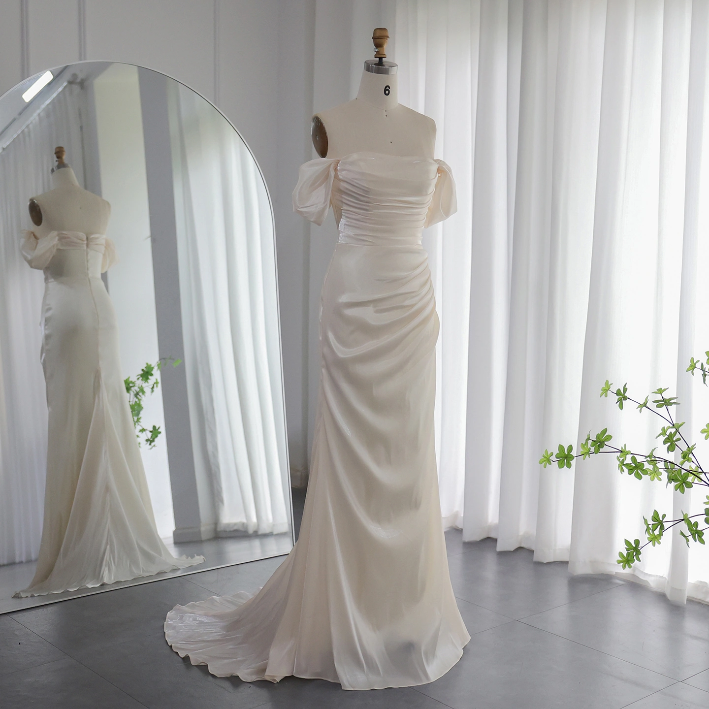French-Style High-End Satin Sexy Dress, Off-Shoulder, with a Train, Banquet Reception Dress, Engagement Bride Dress Sf001