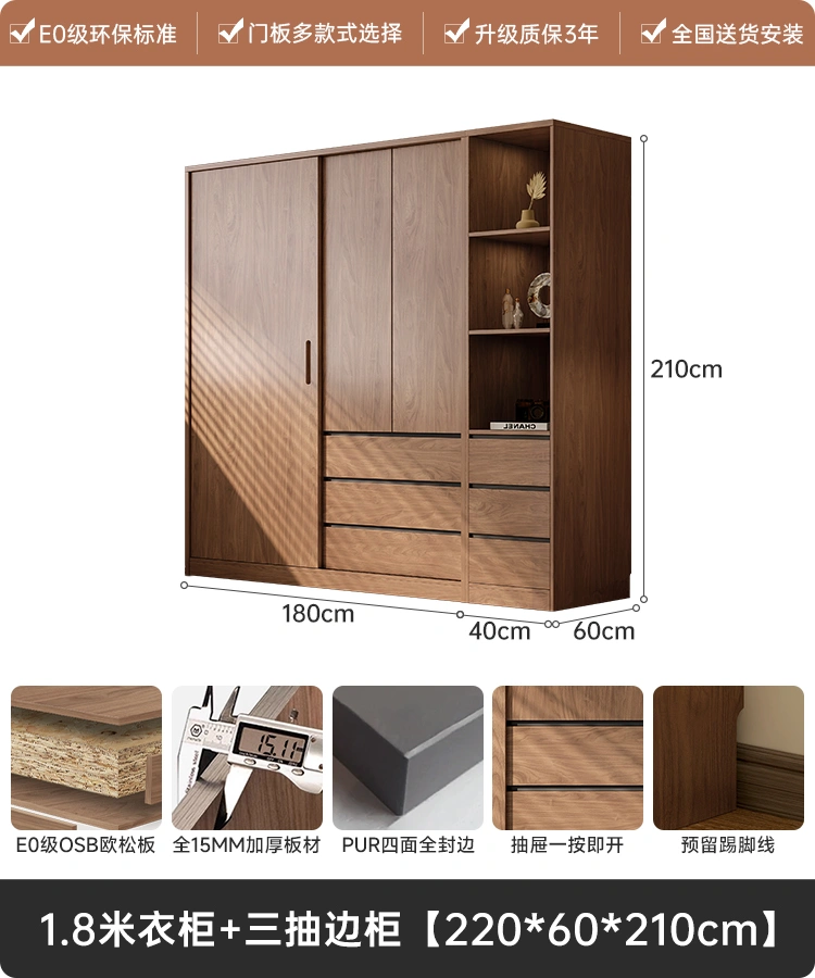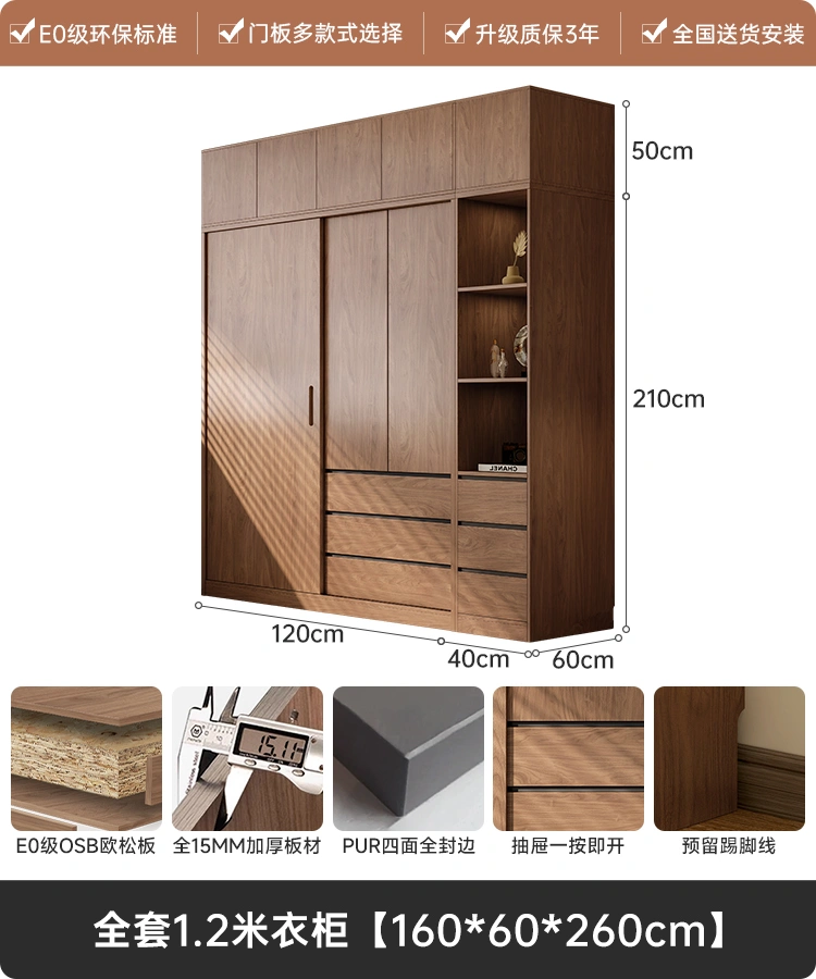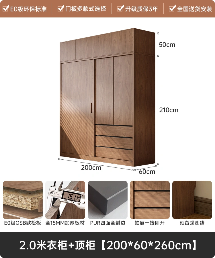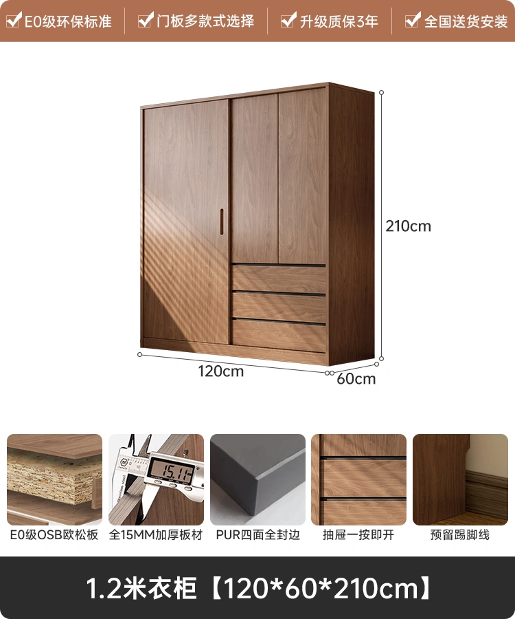 Antique Wardrobe Small Apartment Bedroom For Home Door Minimalist Modern Solid Wood Moving Door Storage Finished Wardrobe