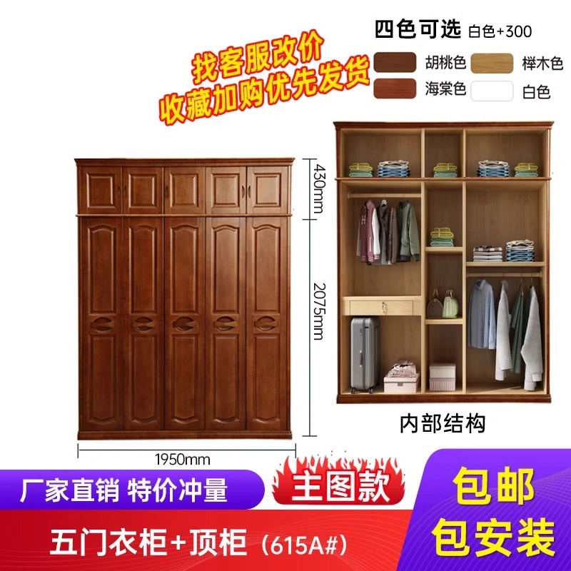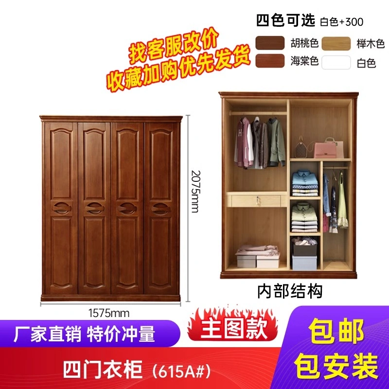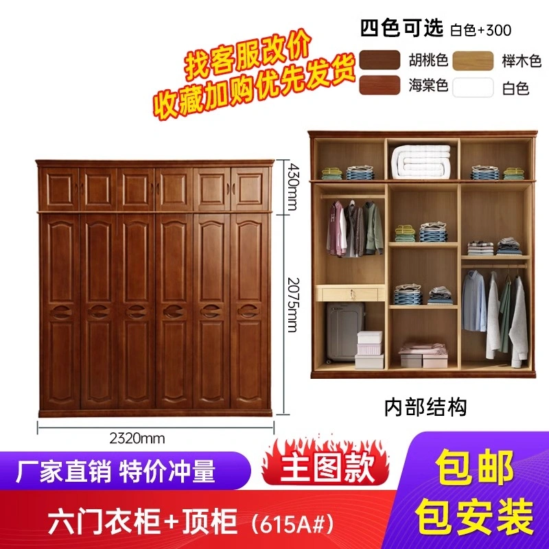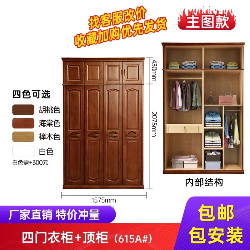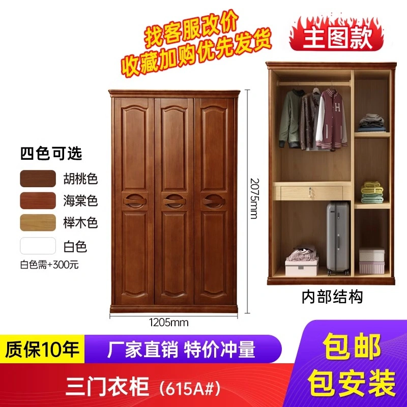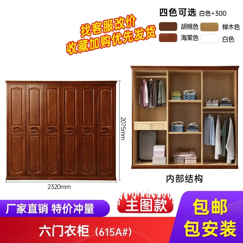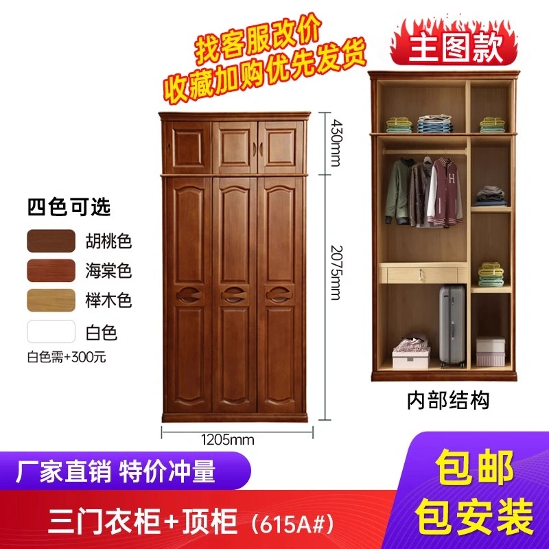 Wardrobe in New Chinese Style for Home Use in the Bedroom, Made of Solid Wood, Modern and Simple, Suitable for Small Apartments, Storage Solid Wood Wardrobe