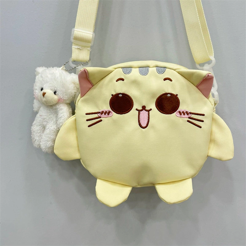 Jiji Upward Original Cute Japanese Style Versatile Soft Girl Cloth Cat Embroidery Student Large Capacity Crossbody Bag