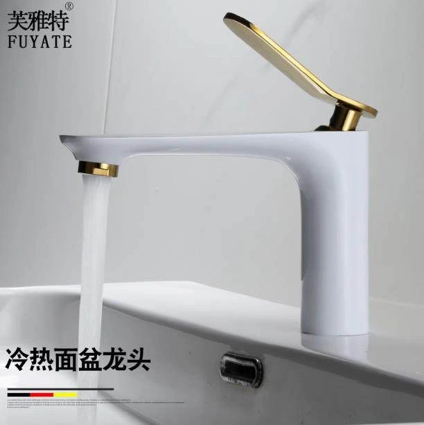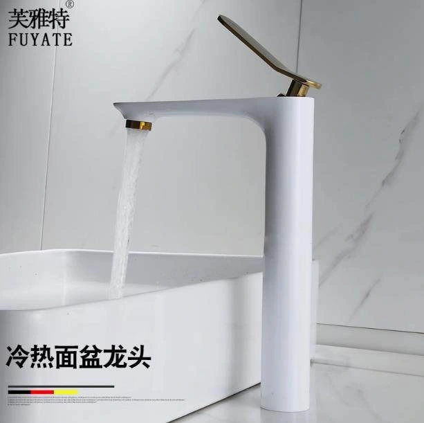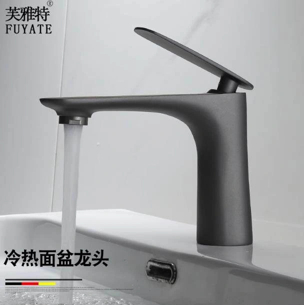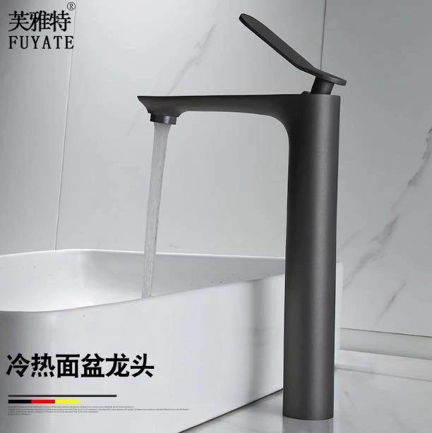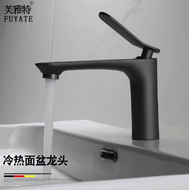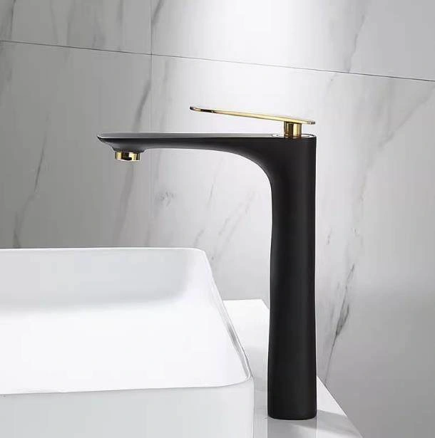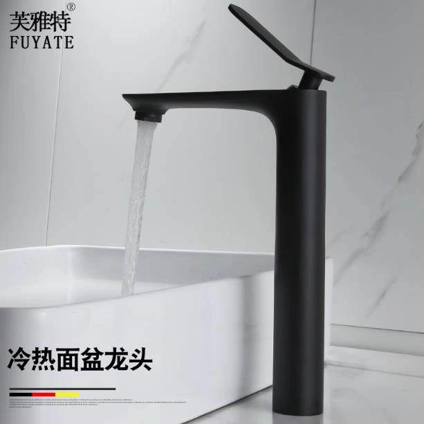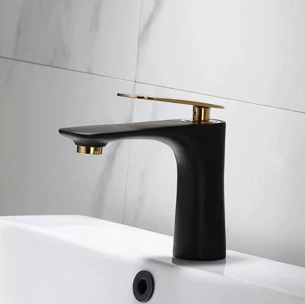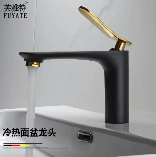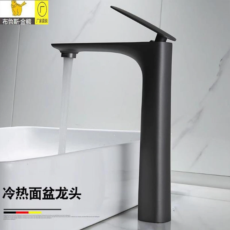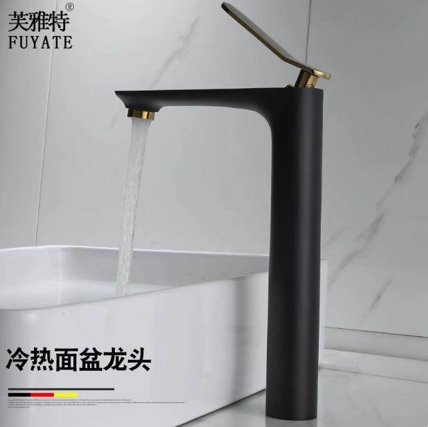 Nordic All-Copper Countertop Basin Bathroom Light Luxury Black and Gold Washbasin Sink with Hot and Cold Water Faucet