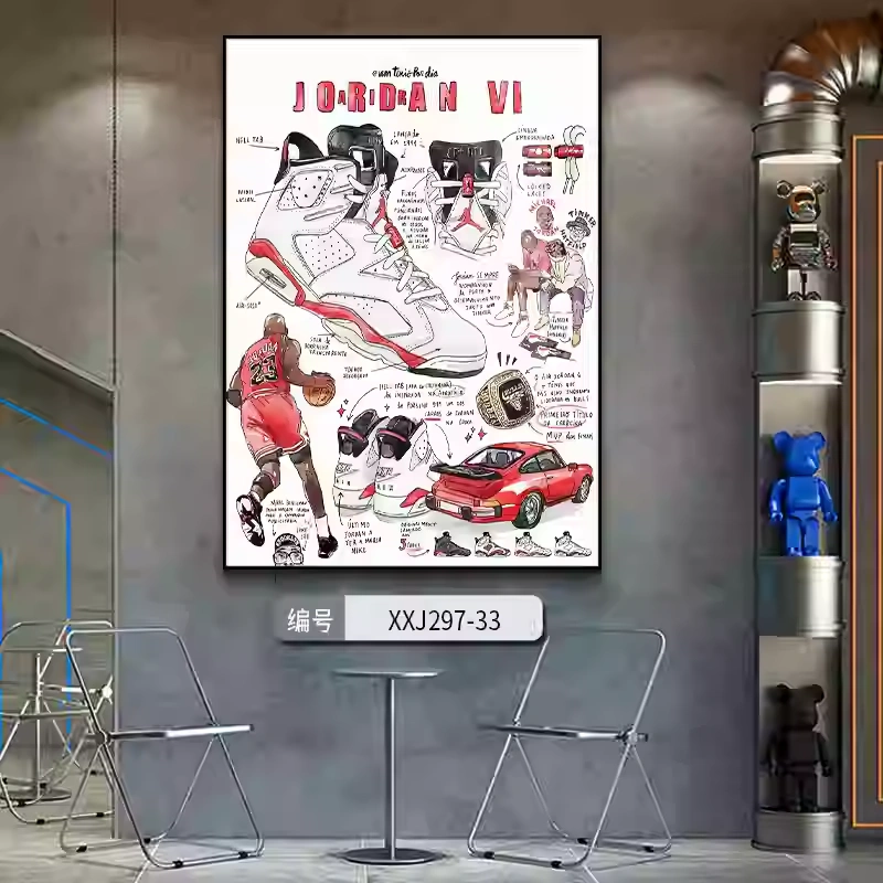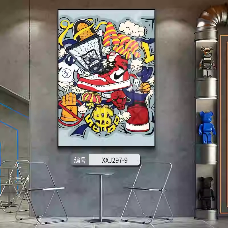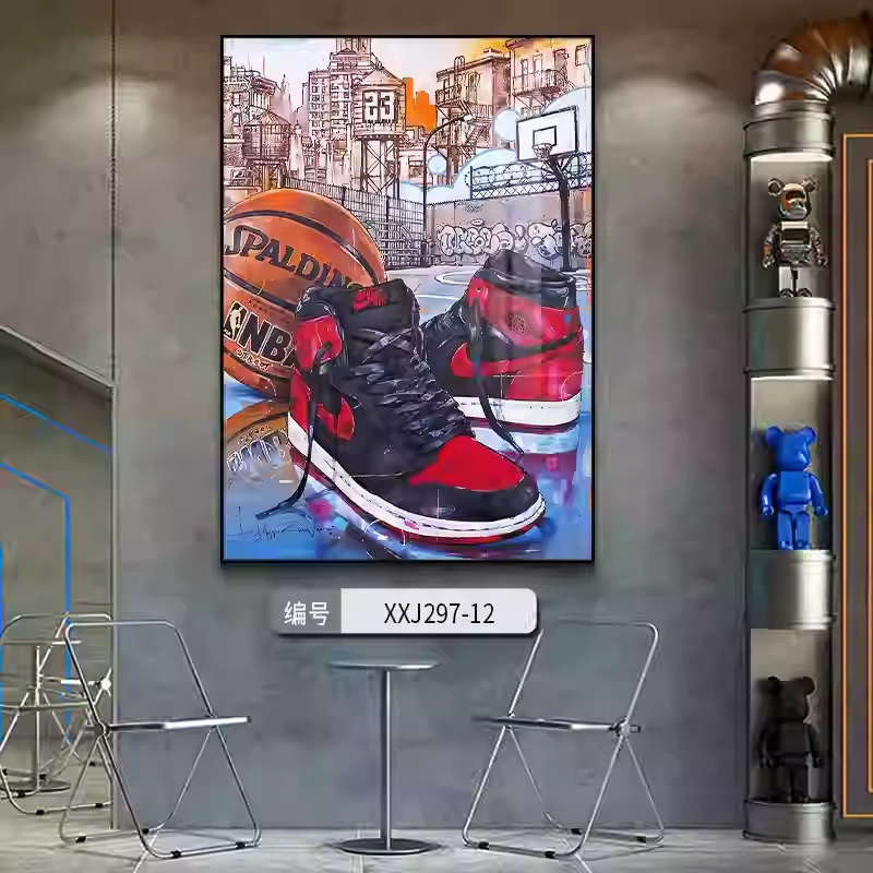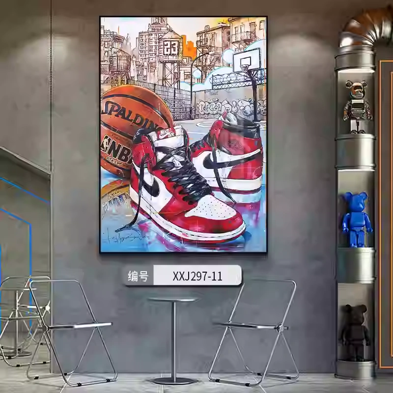 Basketball shoes hanging painting Trendy washing shoes shop decorative painting sports shoes shop wall decoration lamp painting Trendy background wall mural painting