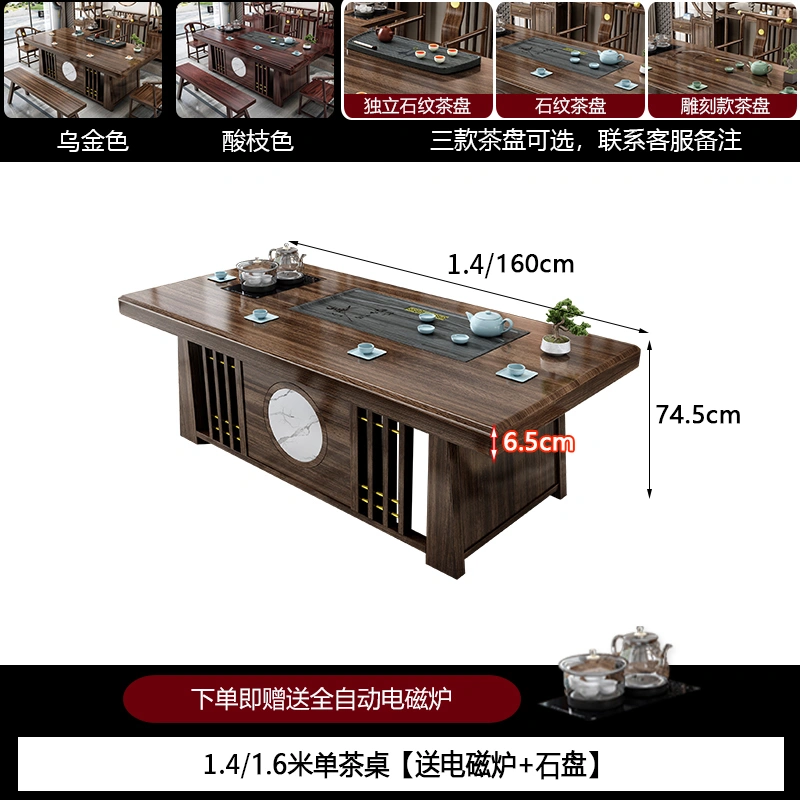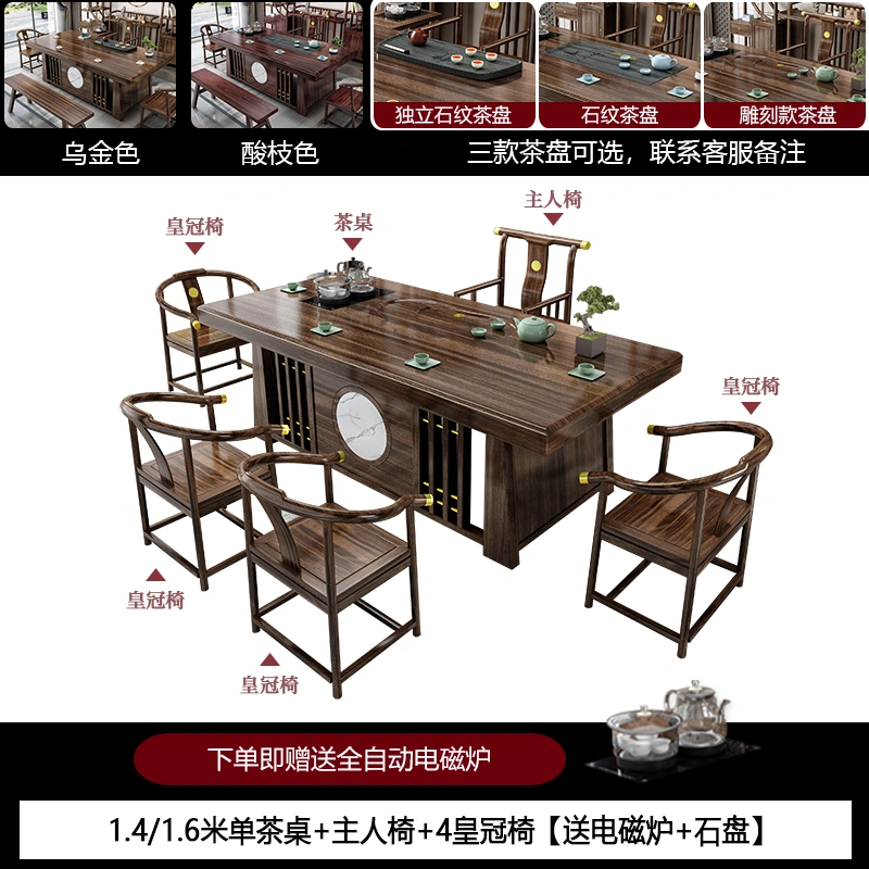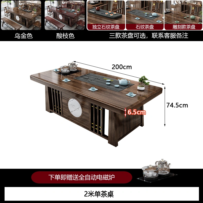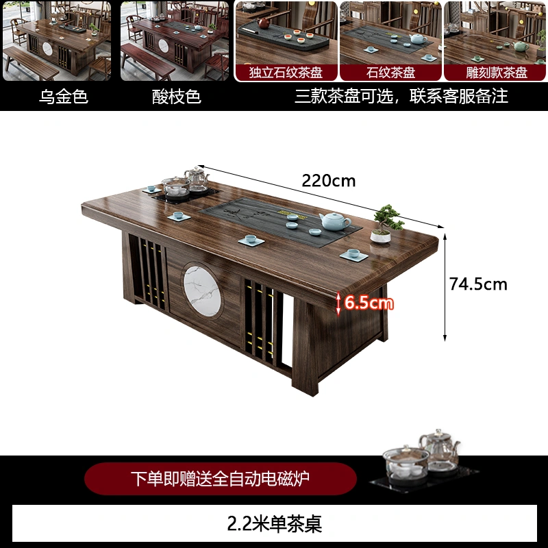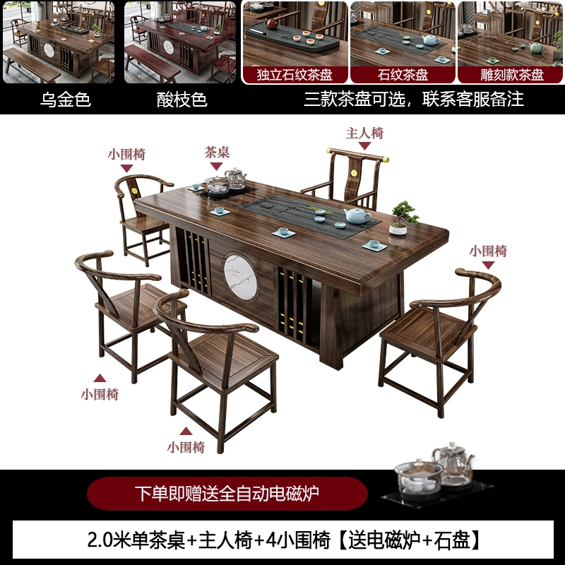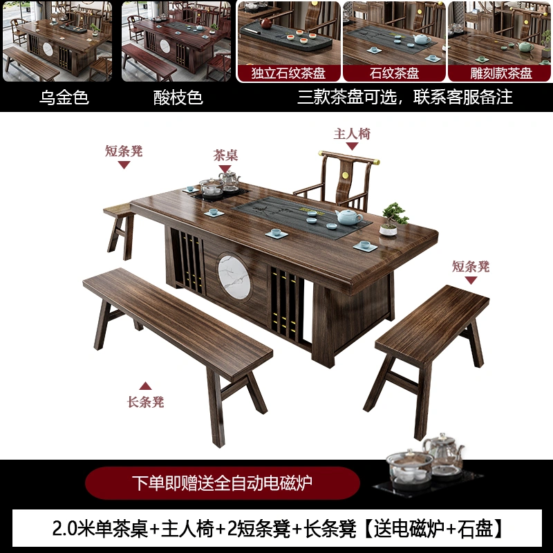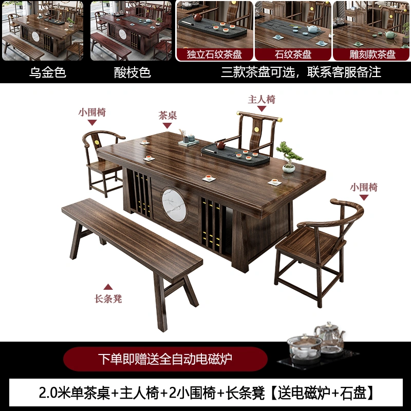 New Chinese Style Ebony Wood Solid Wood Large Board Redwood Tea Table Movable For Home Accessible Luxury Modern Office Kettle Integrated