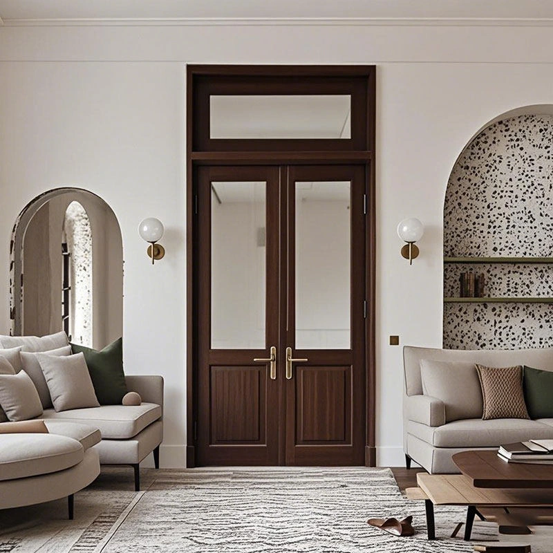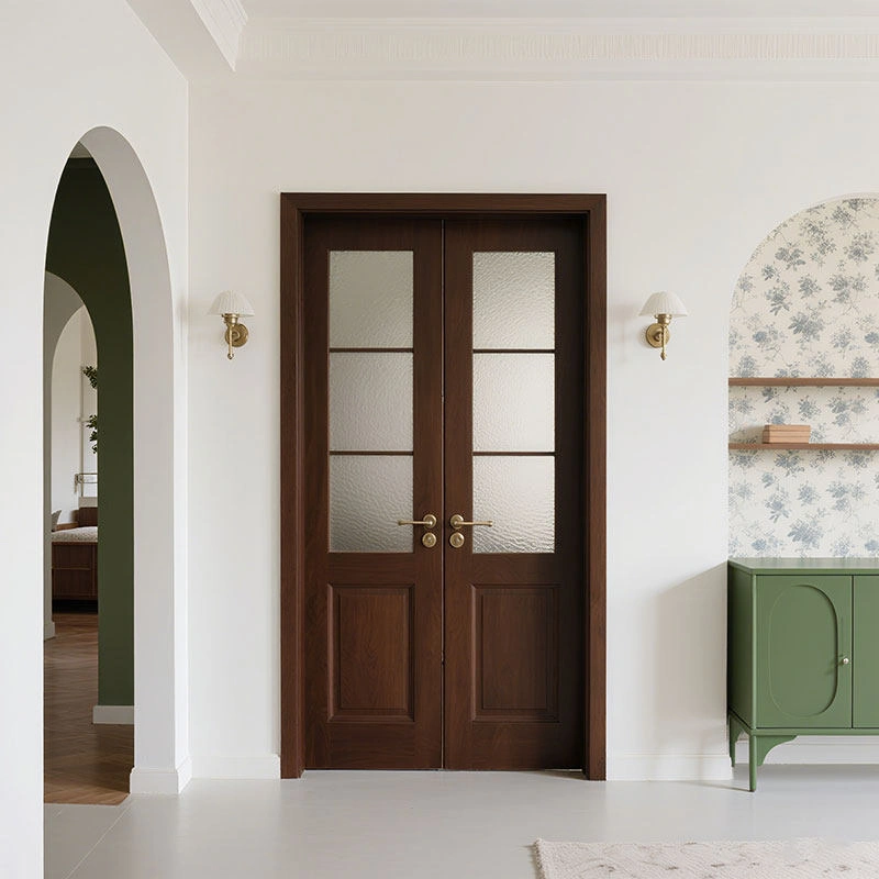 Bedroom Door in Natural Wood Style, French Vintage Solid Wood Door, Study Room Door, Double Door, Interior Door, Arched Door, Mid-Century Style