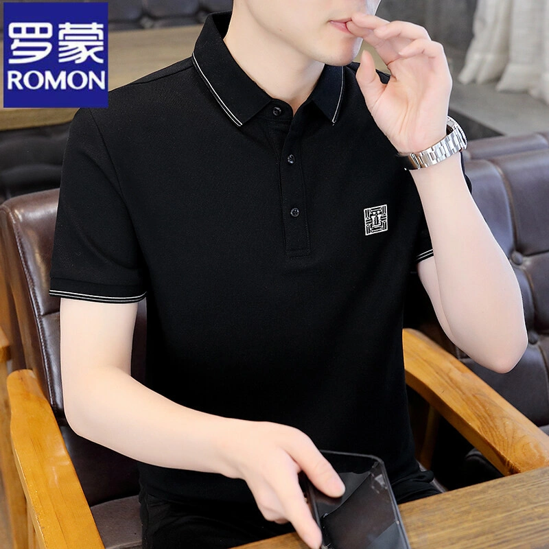 Romon Men's Pure Cotton Short-Sleeve Polo Shirt, New Summer Trendy High-End Style, Collared Half-Sleeve T-Shirt Top