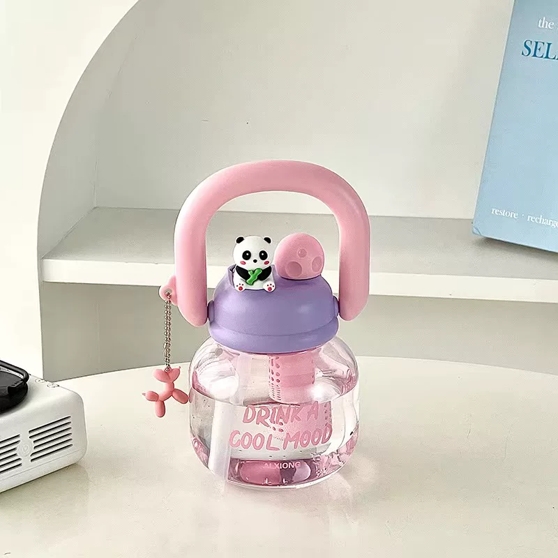 Cute Panda Big-Belly Water Cup 2026 New Model for Girls, High-Value Straw Large-Capacity Plastic Cup, Easy to Carry
