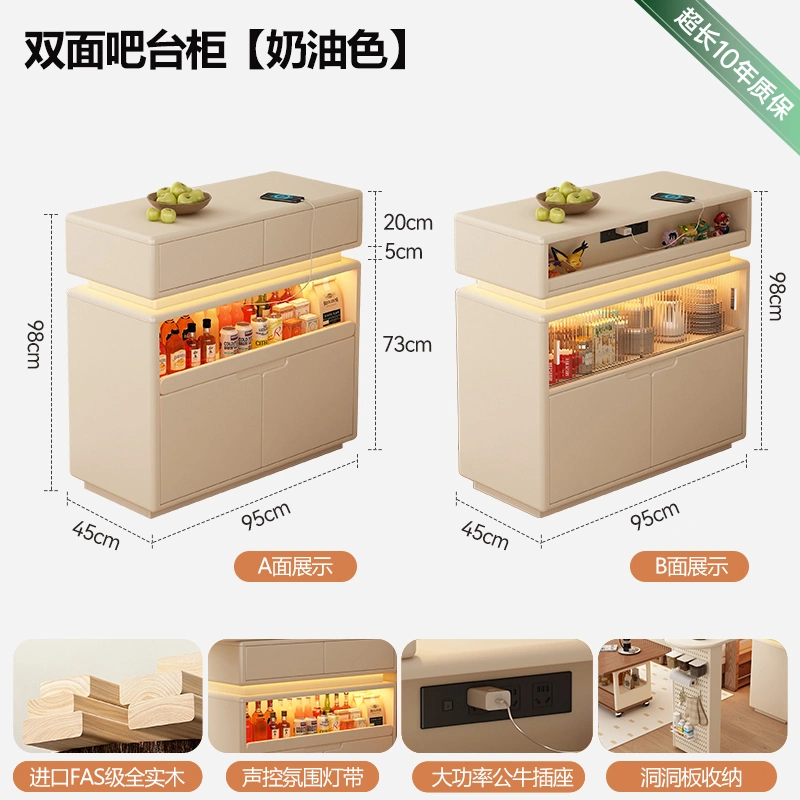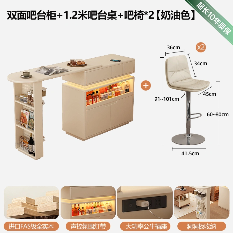 Cream-Style Solid Wood Retractable Bar Table Partition with Integrated Double-Sided Wine Cabinet for Living Room, Wall-Mounted, Rotatable, Multifunctional