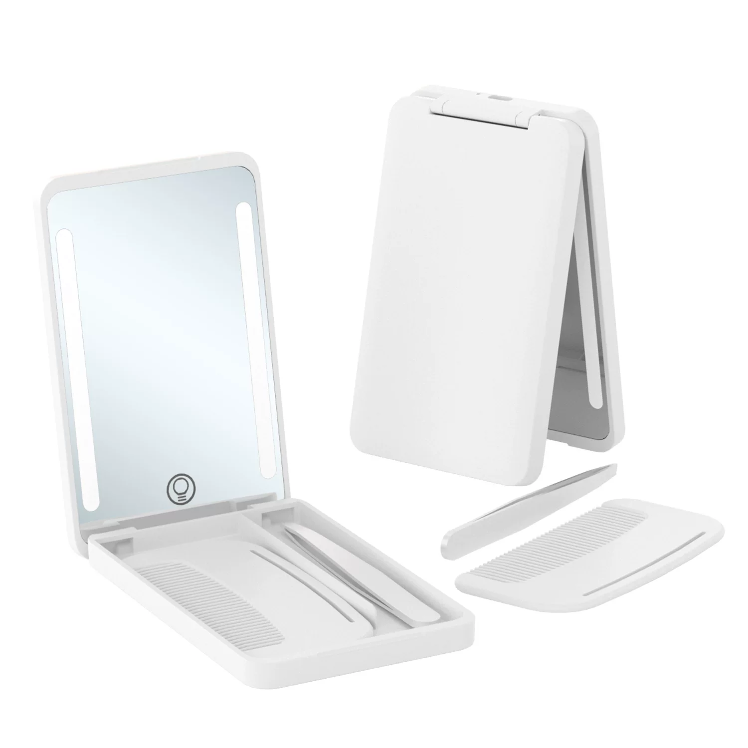 Led Smart Light-Free Small Mirror and Comb Two-In-One Set, Portable Pocket Makeup Mirror and Comb