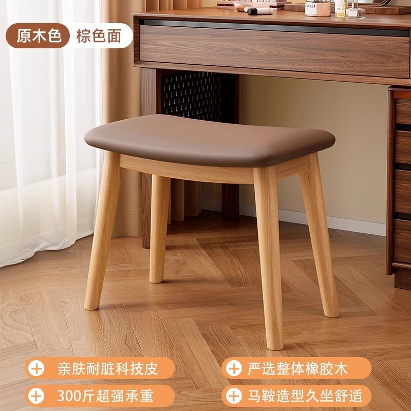 Shoe-Changing Bench for Home Entrance, Luxury High-End Saddle Bench, Solid Wood Upholstered Dressing Table Stool