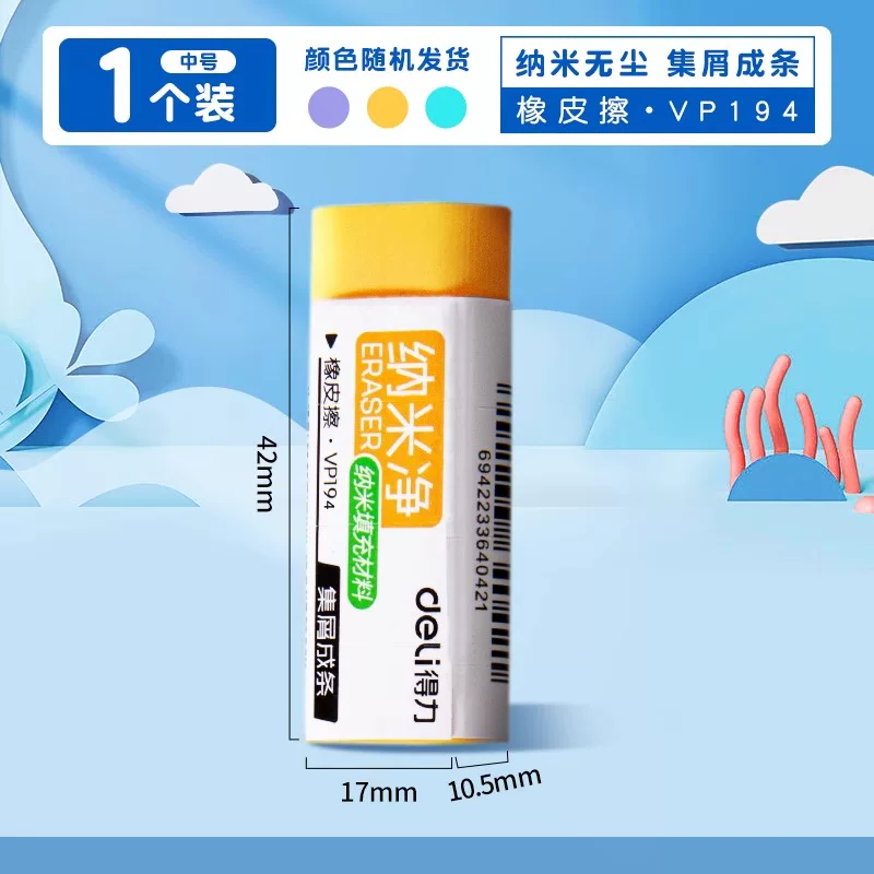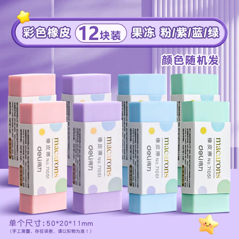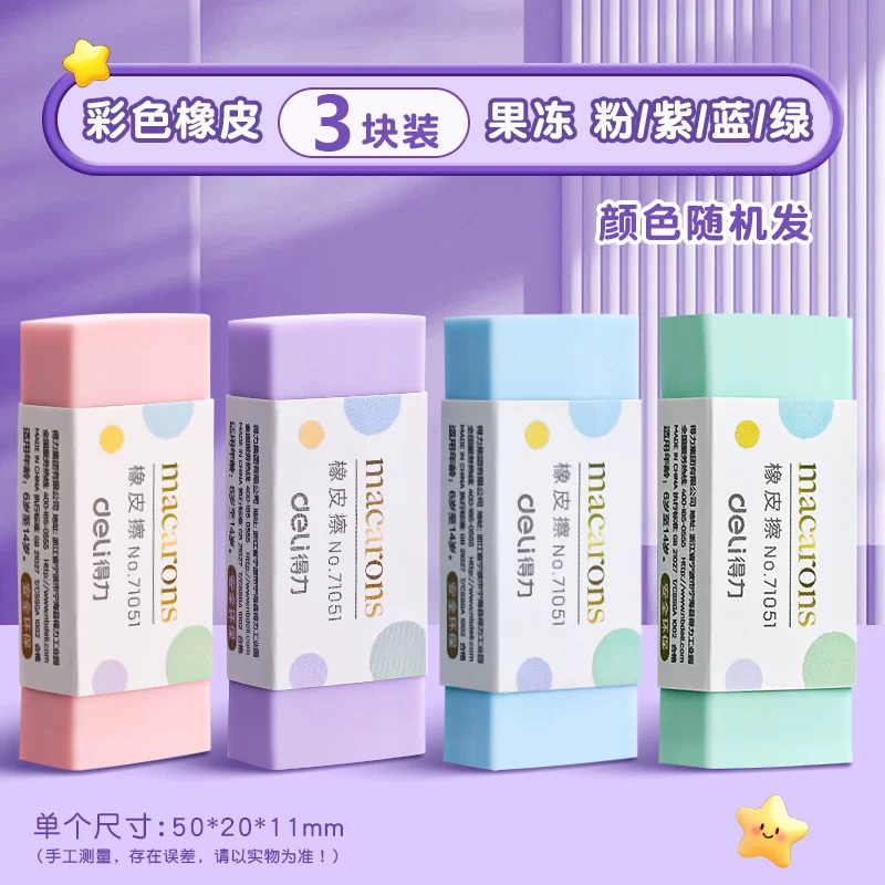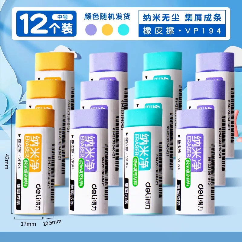 Deli Nano Eraser for Students, True Debris-Free, Clean, No Residue, Macaron Color 4B Exam Eraser