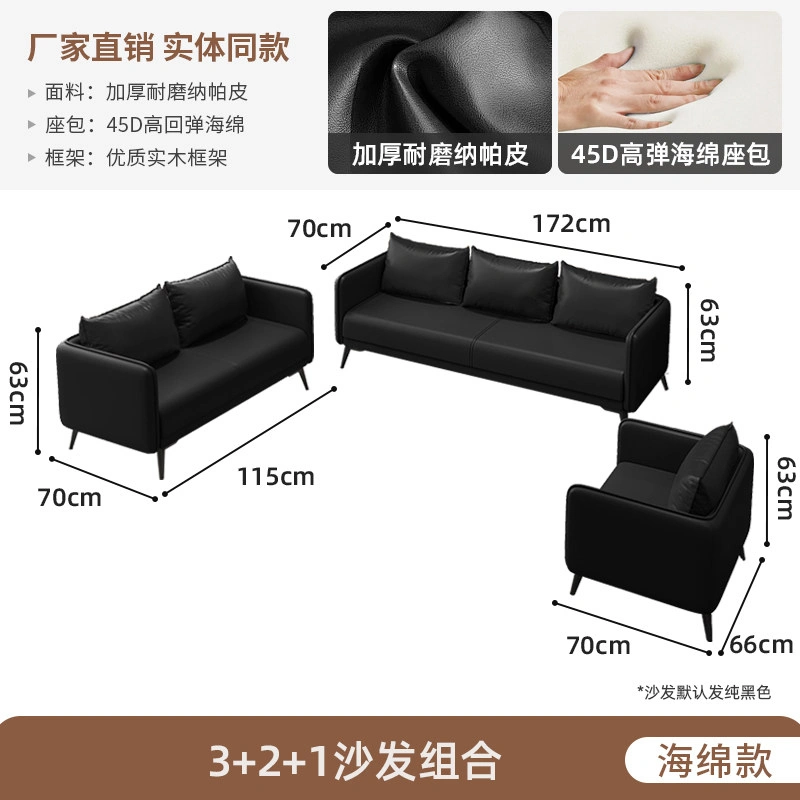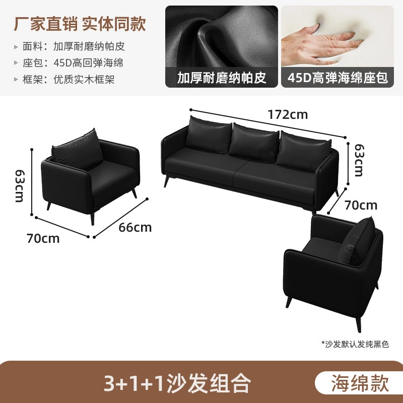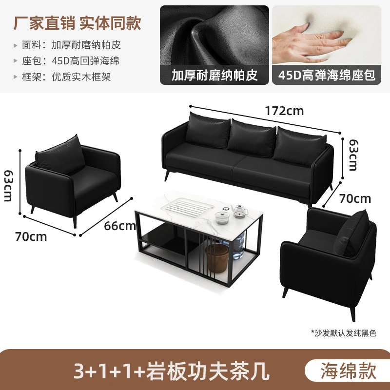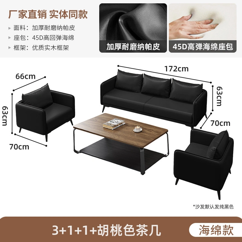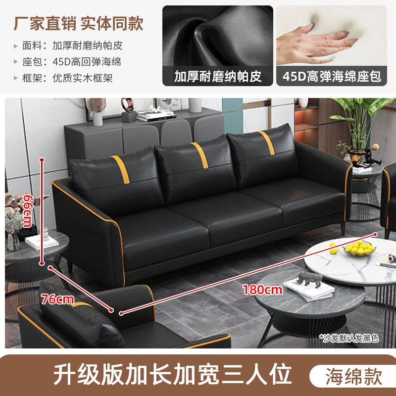 Office Sofa Coffee Table Combination Business Reception Simple Modern Small Three-Seat Black Office Sofa