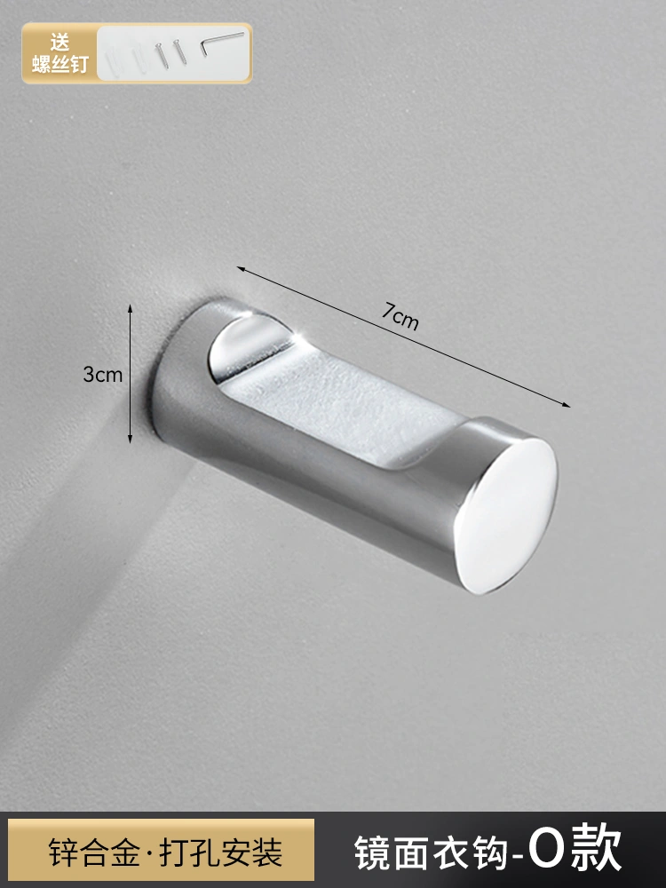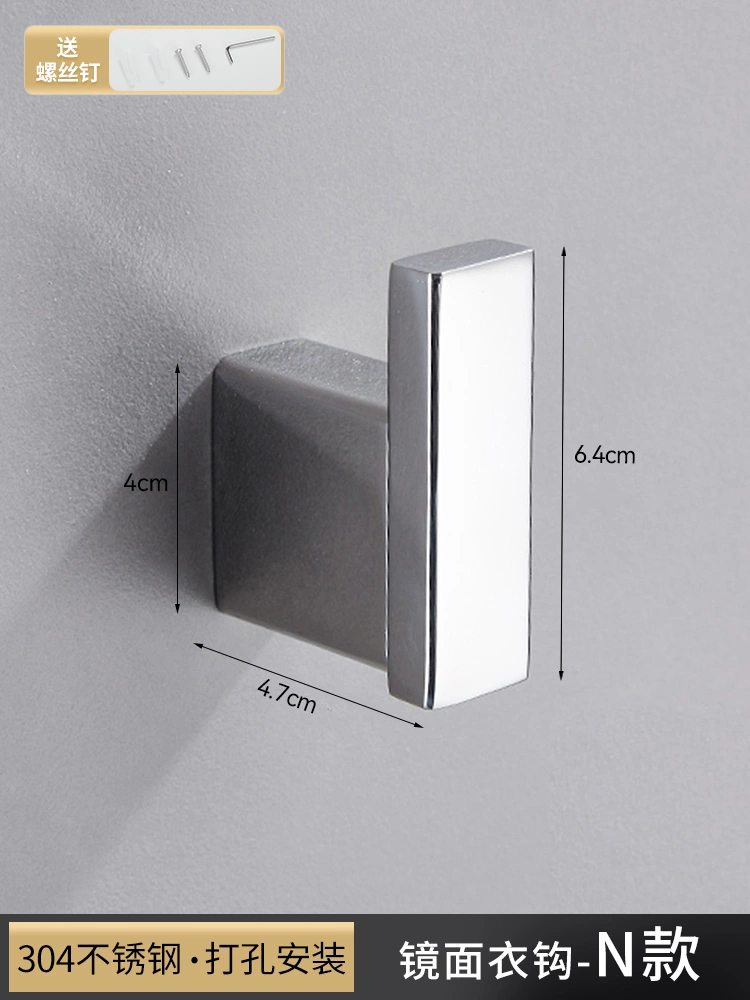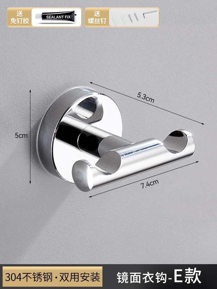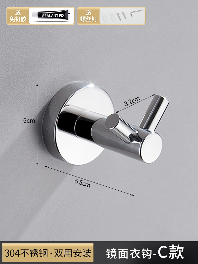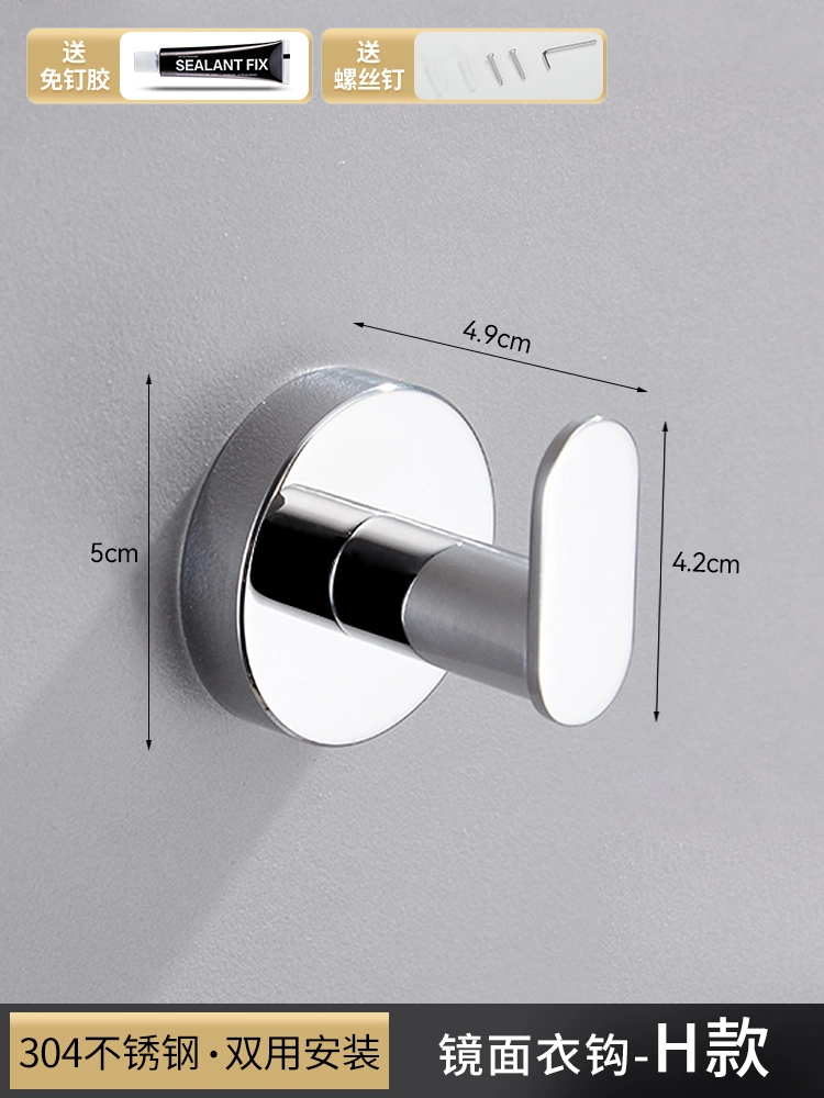 Stainless Steel Punch-Free Single Hook Bathroom Clothes Hook, Bathroom Coat Hook, Wall-Mounted Creative Towel and Bath Towel Hook