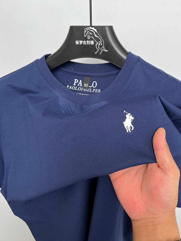 Paul Gulid Paul 100% Cotton T-Shirt Men's Round Neck Classy Embroidered Pony Logo T-Shirt Men's Clothing