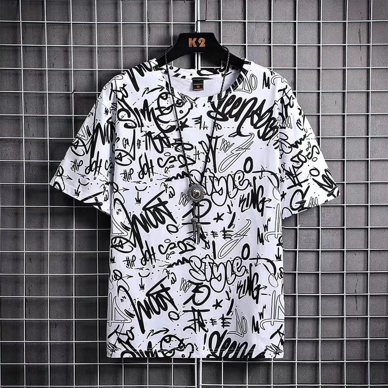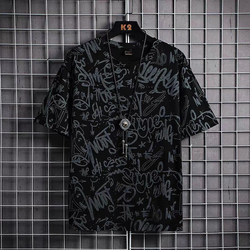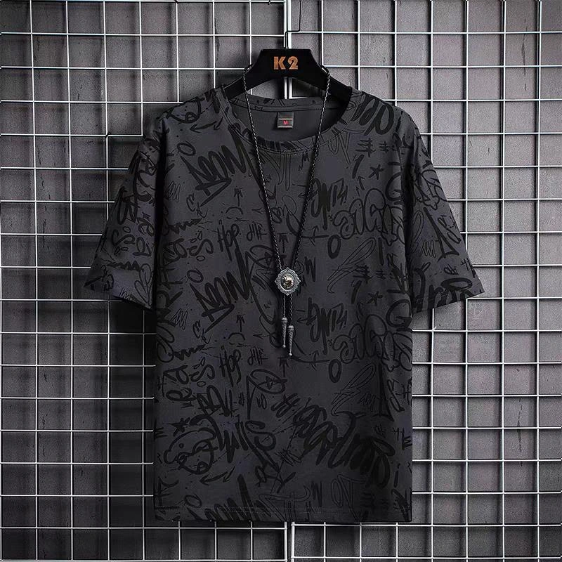 9.9 Graffiti Short-Sleeved T-Shirt for Work, Men's Loose Summer Ice Silk Half-Sleeved Plus Fat Plus Size Top