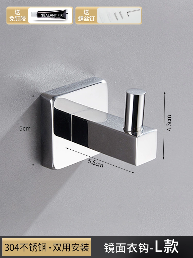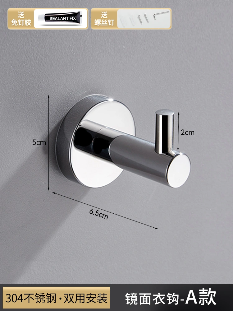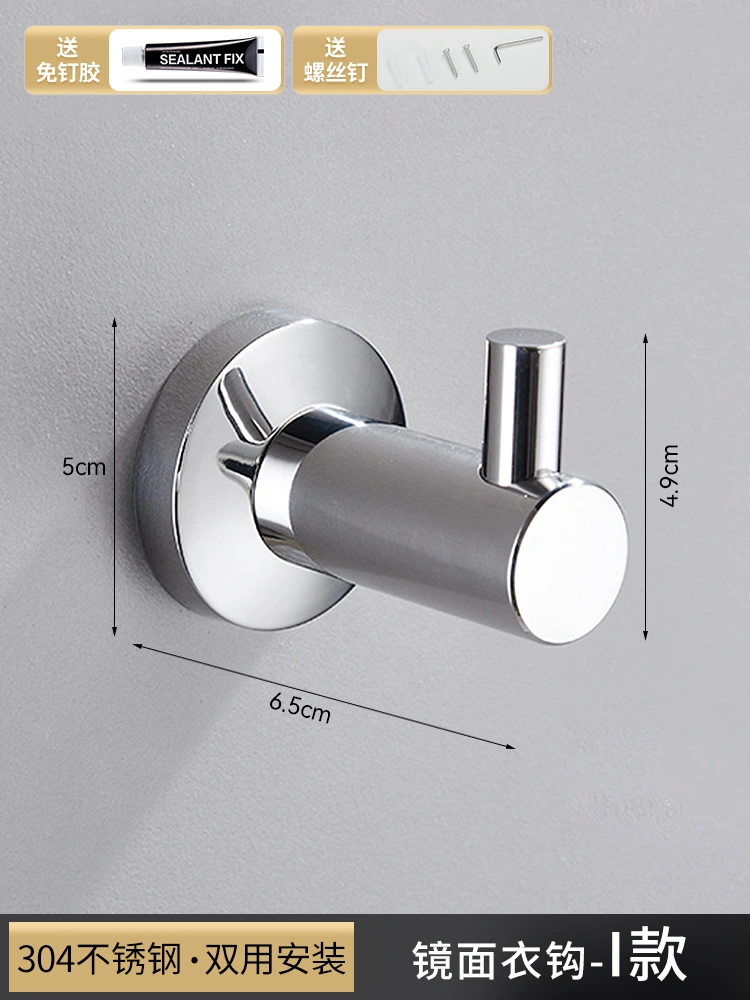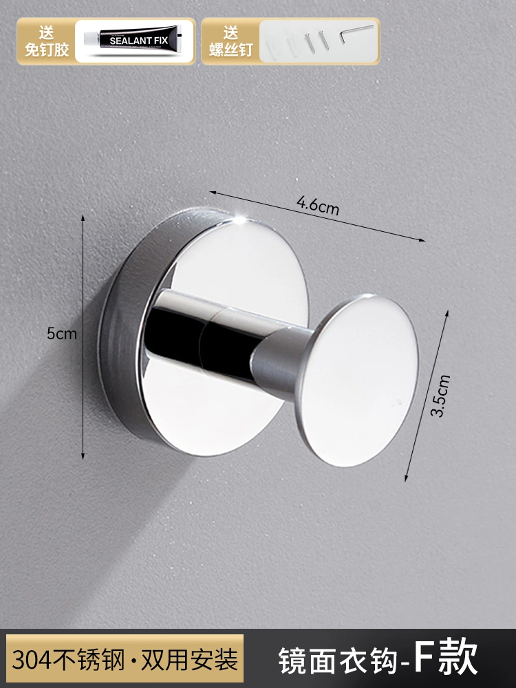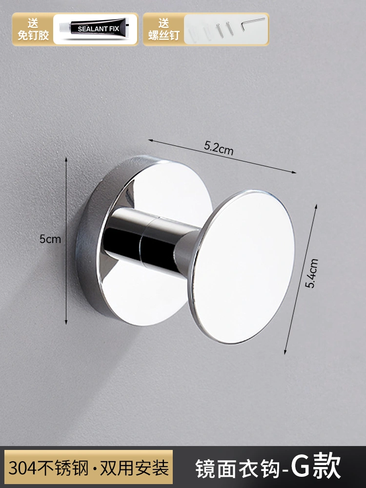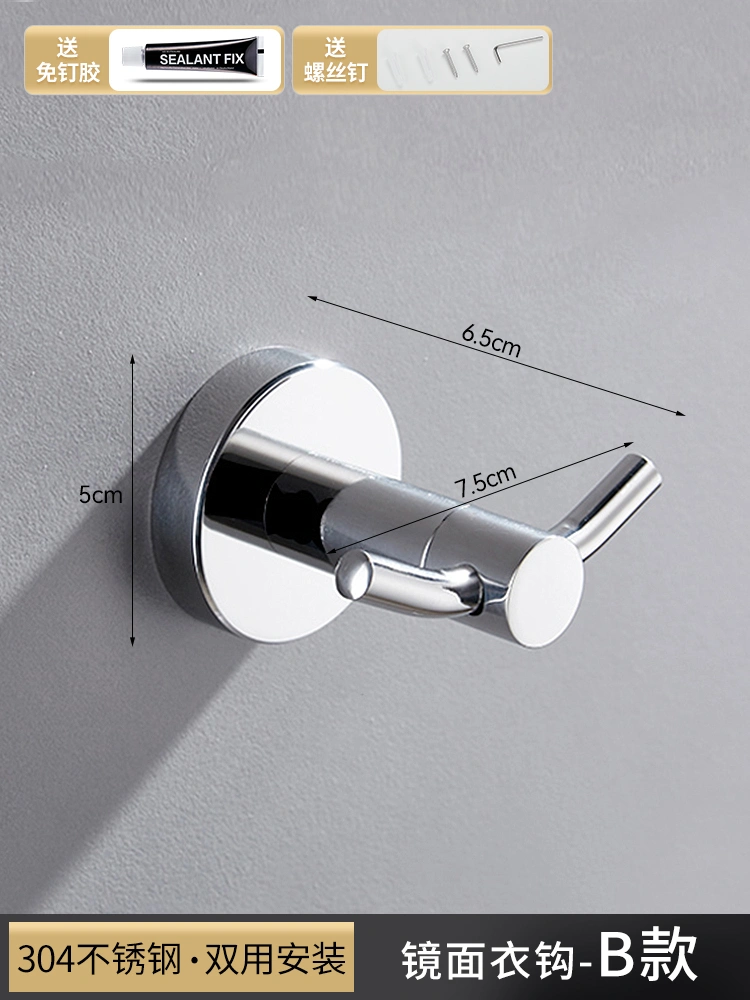 304 Stainless Steel Hook for Shower Room, Creative Clothes Hook for Engineering Use, Bathroom Towel and Bath Towel Hook, No-Drill Single Hook