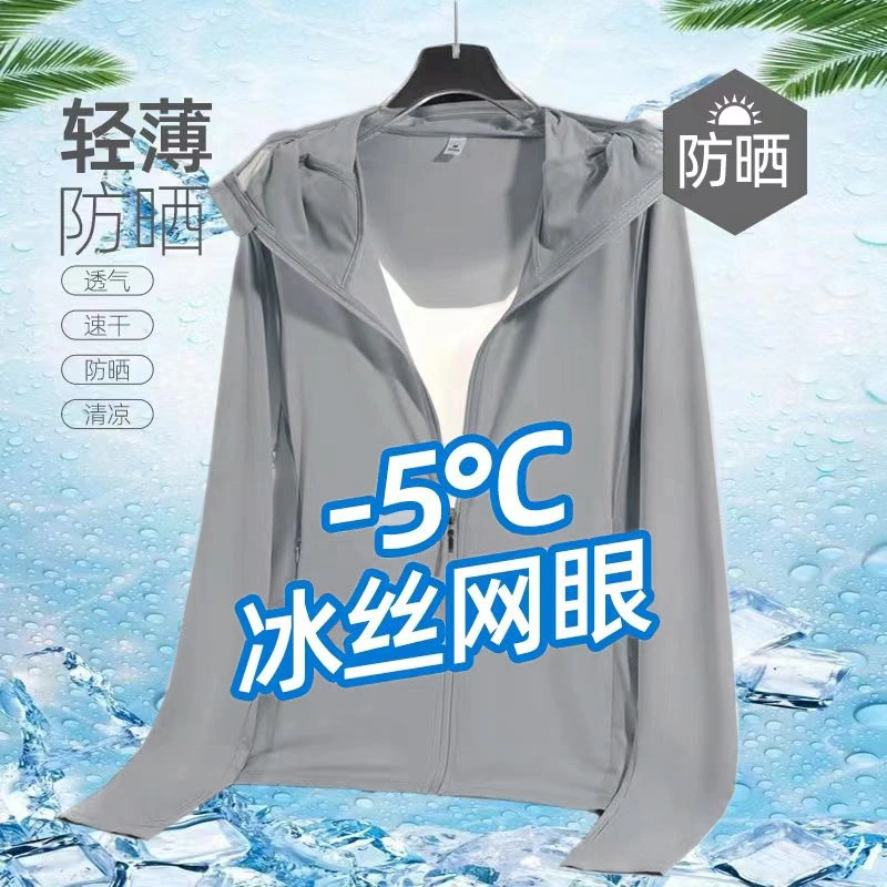 2025 Summer Ice Silk Sun Protection Clothing for Men and Women, Quick-Drying, Lightweight, Korean Style, Casual, Versatile Outdoor Hooded Jacket Top