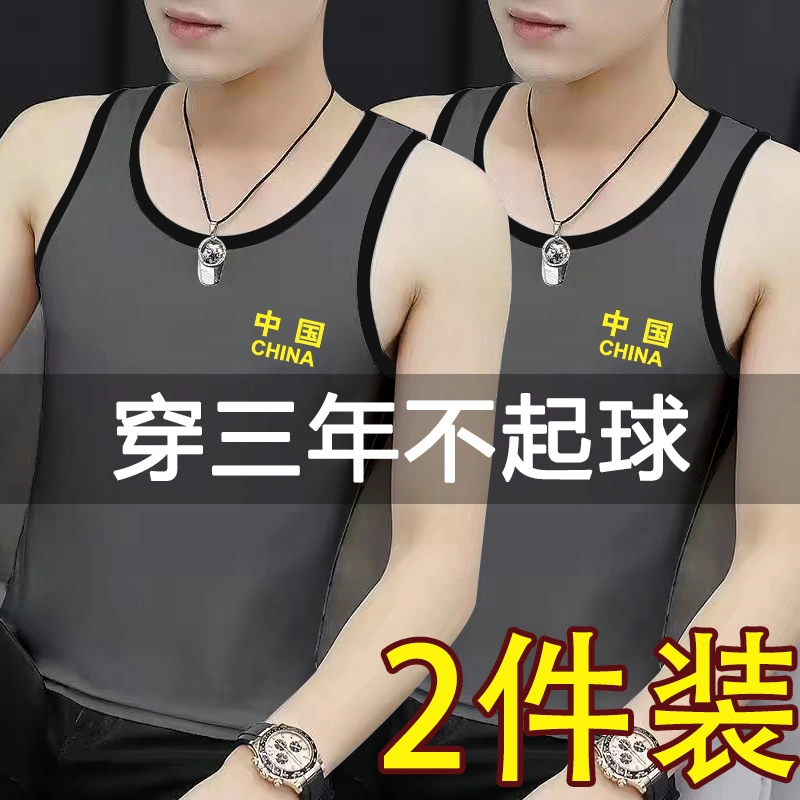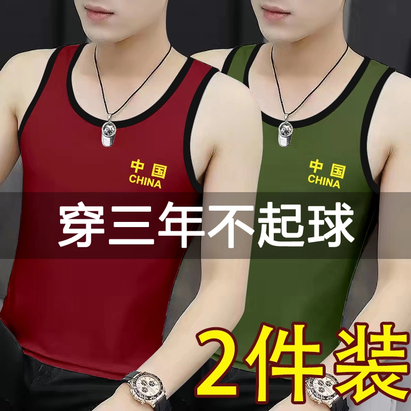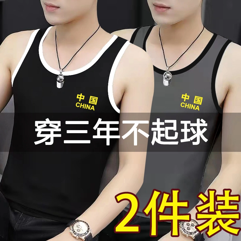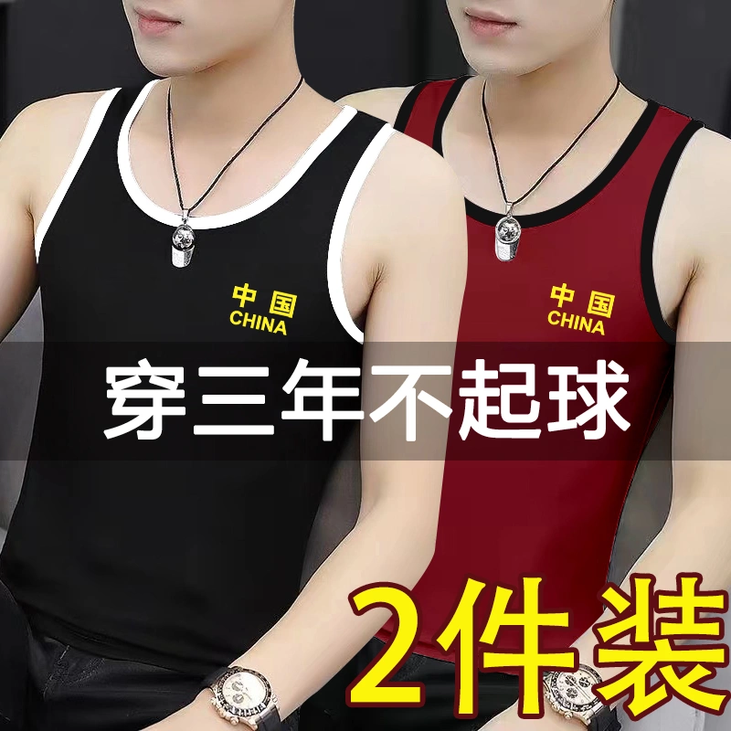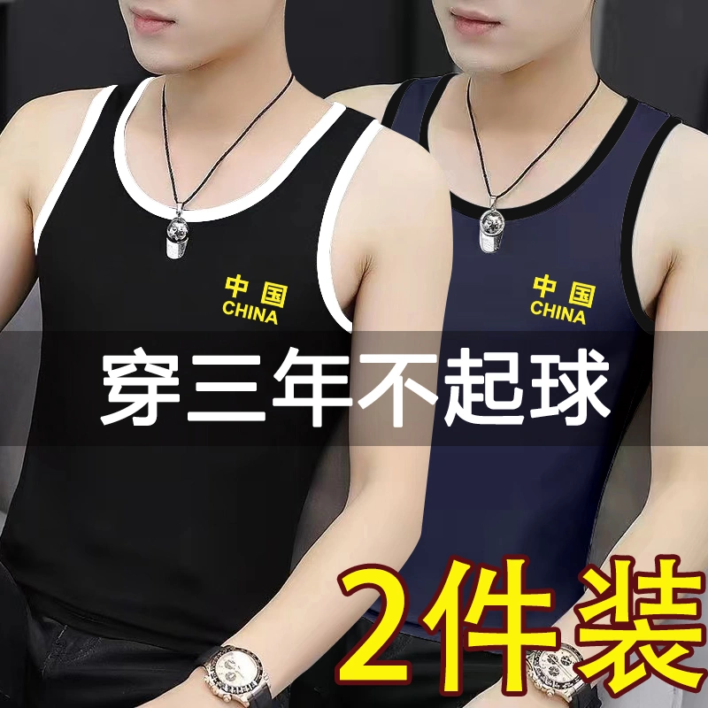 Men's Printed Sweat Vest Pure Cotton Slim Fit Youth Bodybuilding Hurdle Sports Tight Breathable Elastic Racer Bottoming Shirt