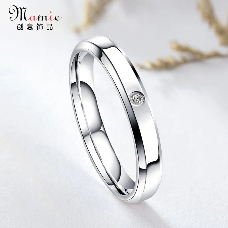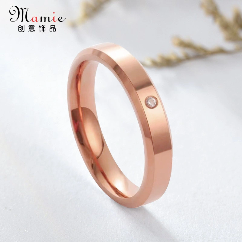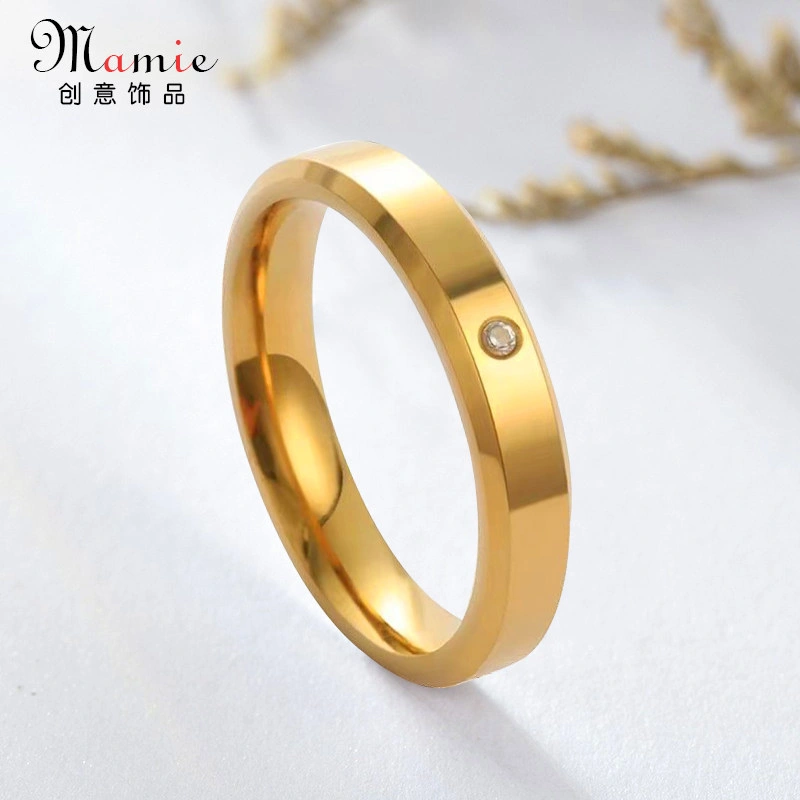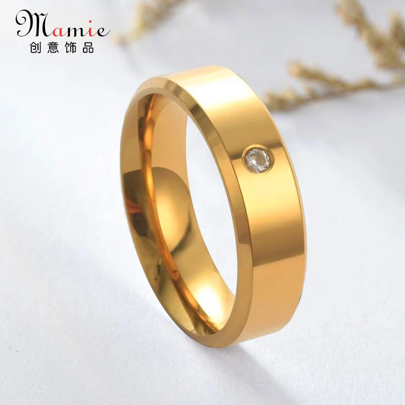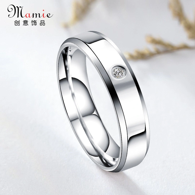 High-End Single Diamond Glossy Double Beveled Non-Fading Ring for Men, Simple Women's Ring, Vintage Titanium Steel Couple Ring