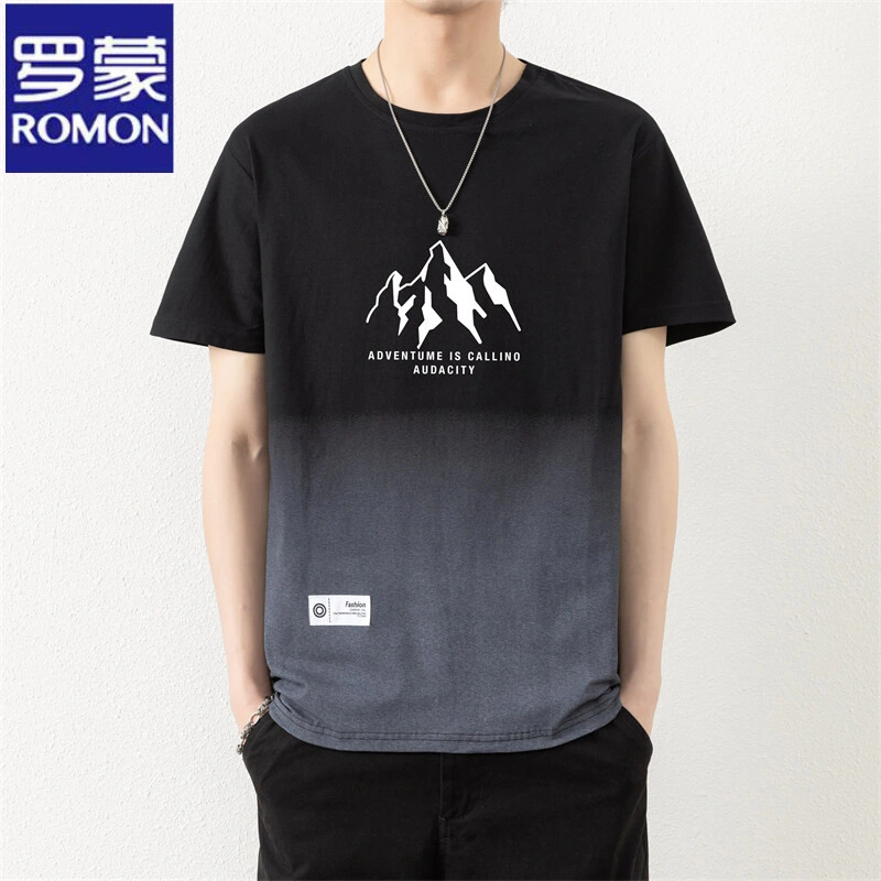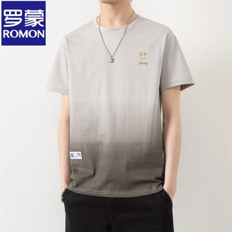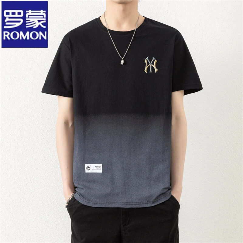 Romon Pure Cotton Gradient Color Short-Sleeved T-Shirt for Men, New Summer Thin Trendy Round-Neck Half-Sleeve Base Shirt Clothing