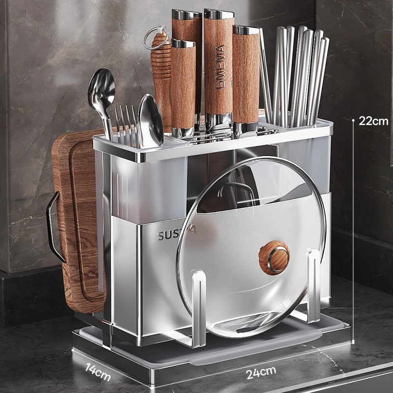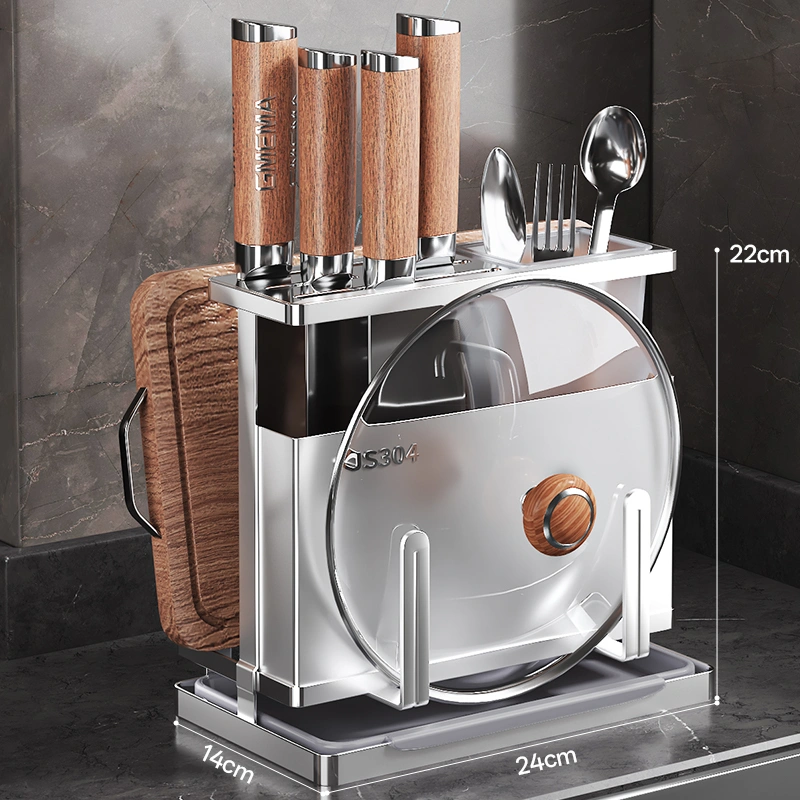 Kitchen Stainless Steel Knife Holder Storage Rack 2025 New Model Knife Holder Cutting Board Rack Integrated Chopping Board Rack Multifunctional Countertop Model