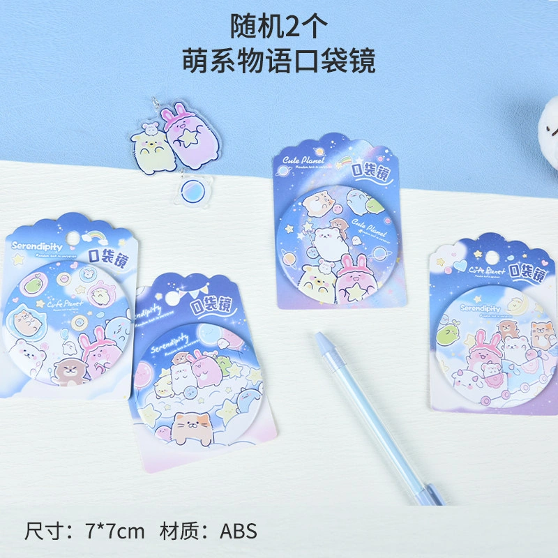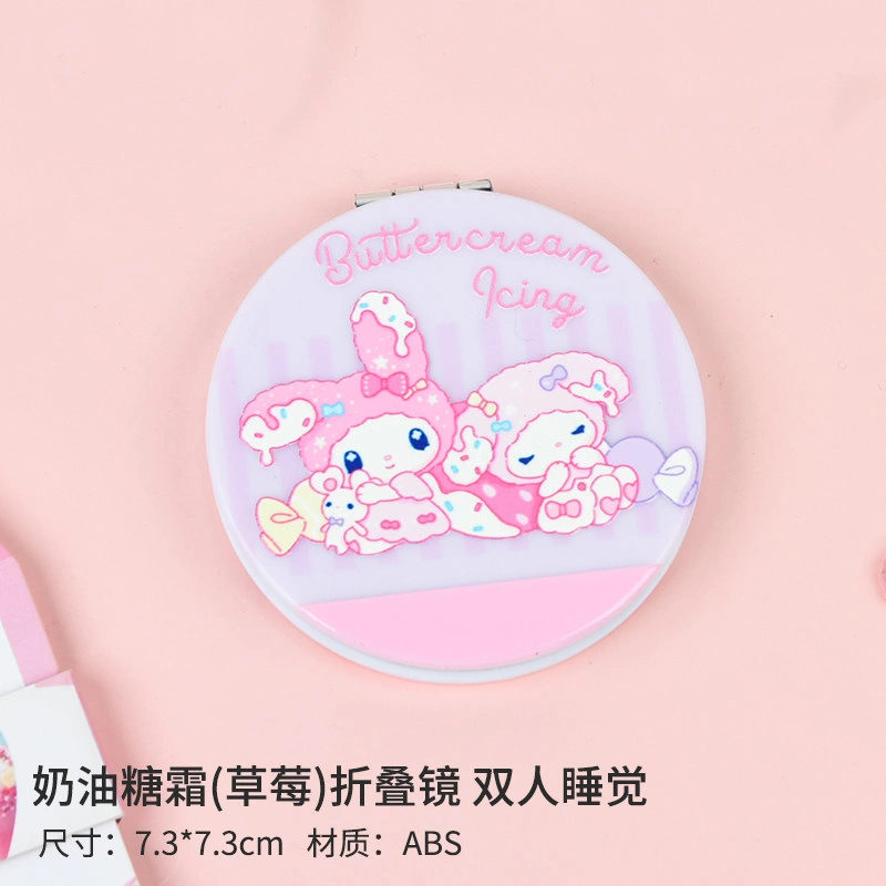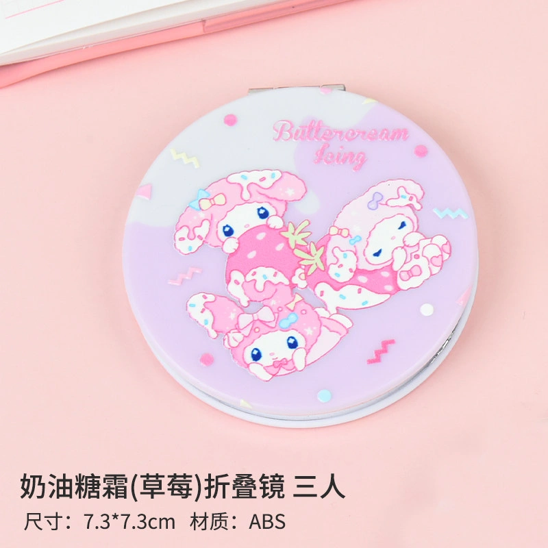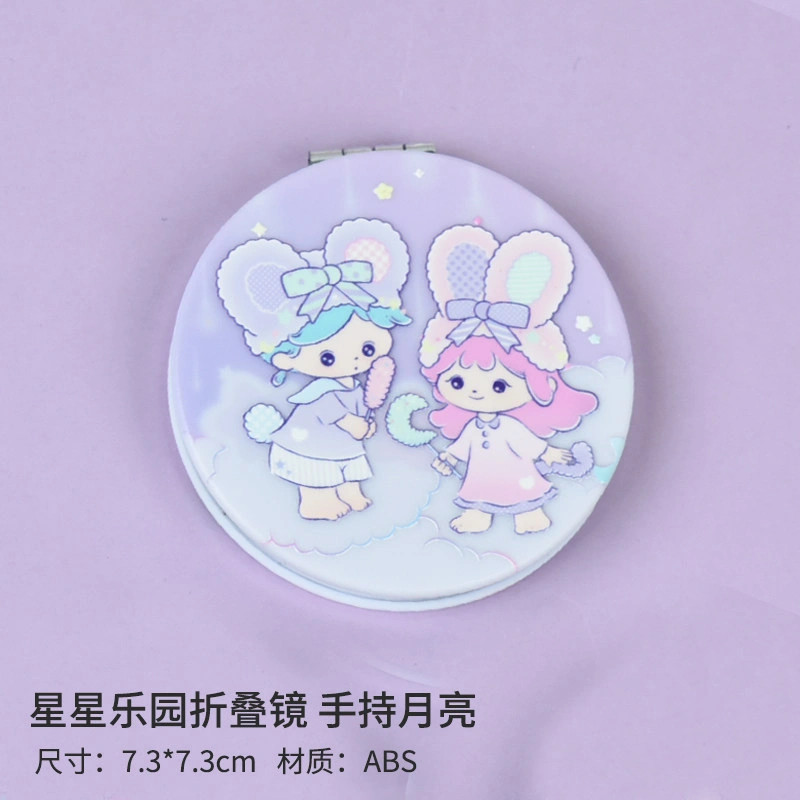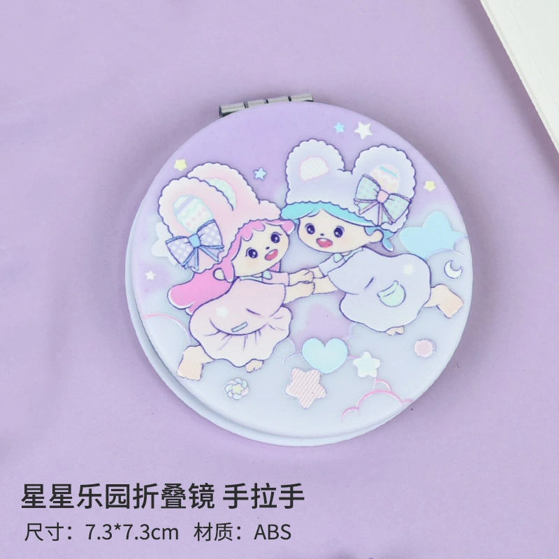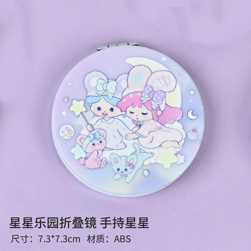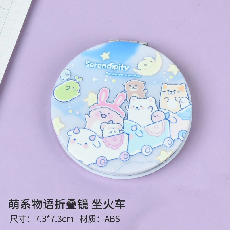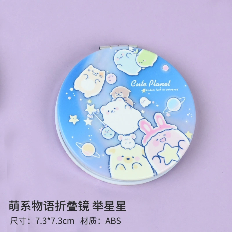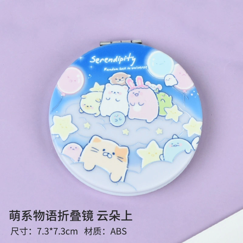 Small and Cute Cartoon Girl Makeup Mirror, Flip-Top Round Double-Sided Mirror, Portable Handheld Pocket Mirror for Students