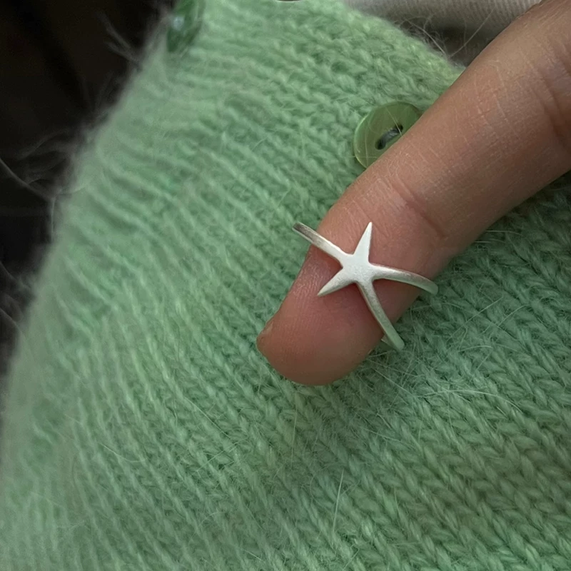 【Old Alley】 Ring with Matte Frosted Starfish Design, Niche, Minimalist, Adjustable, Stackable, Open-Ended