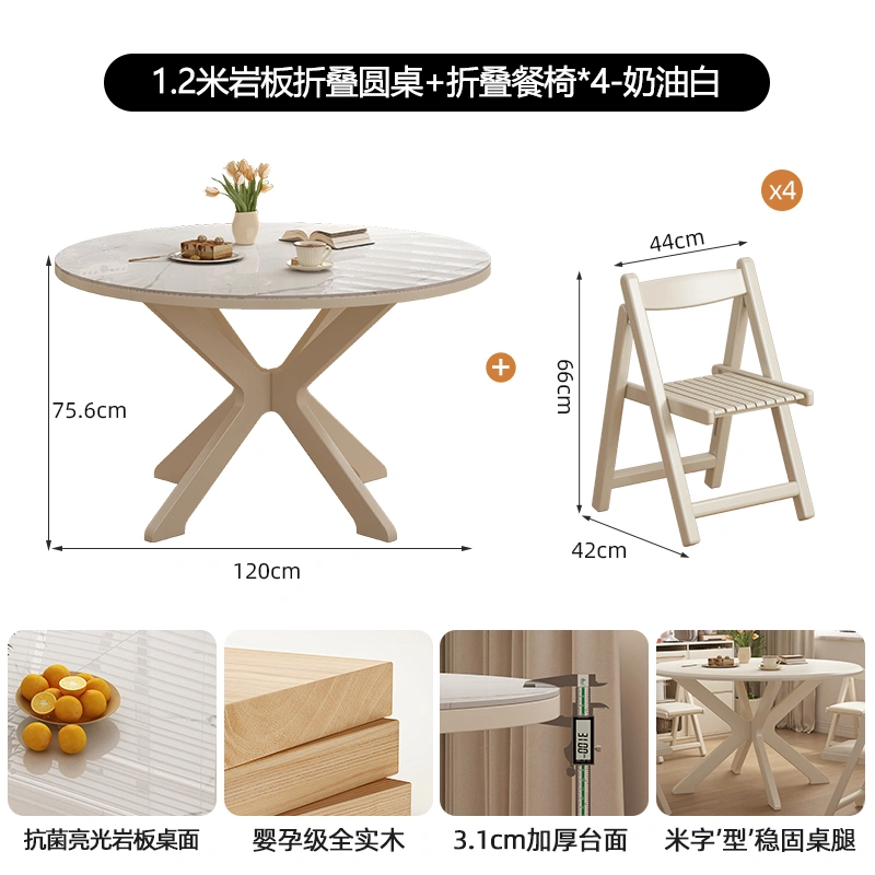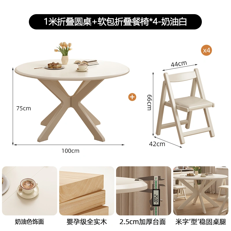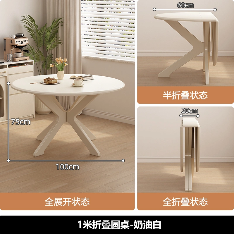 Medieval Style Solid Wood Folding Dining Table Round Household Small Apartment Convertible Round Table 2025 New Multifunctional Dining Table
