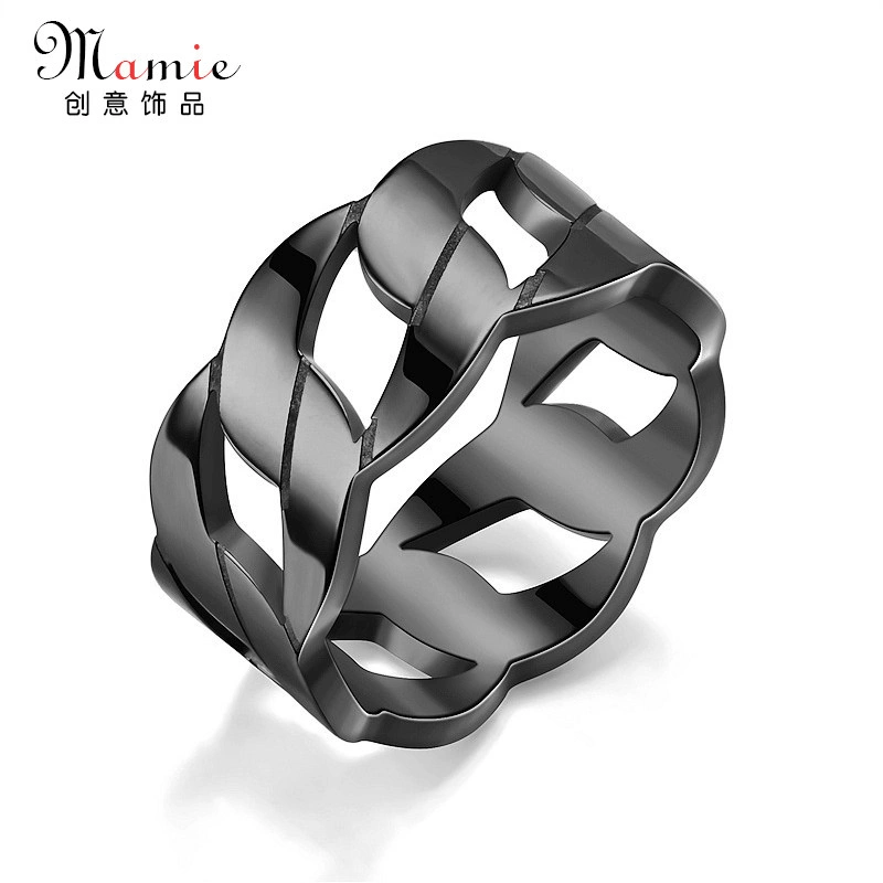 8mm Wide Trendy Unisex High-End Non-Fading Titanium Steel Ring Popular Rock Chain Engraved Ring Jewelry