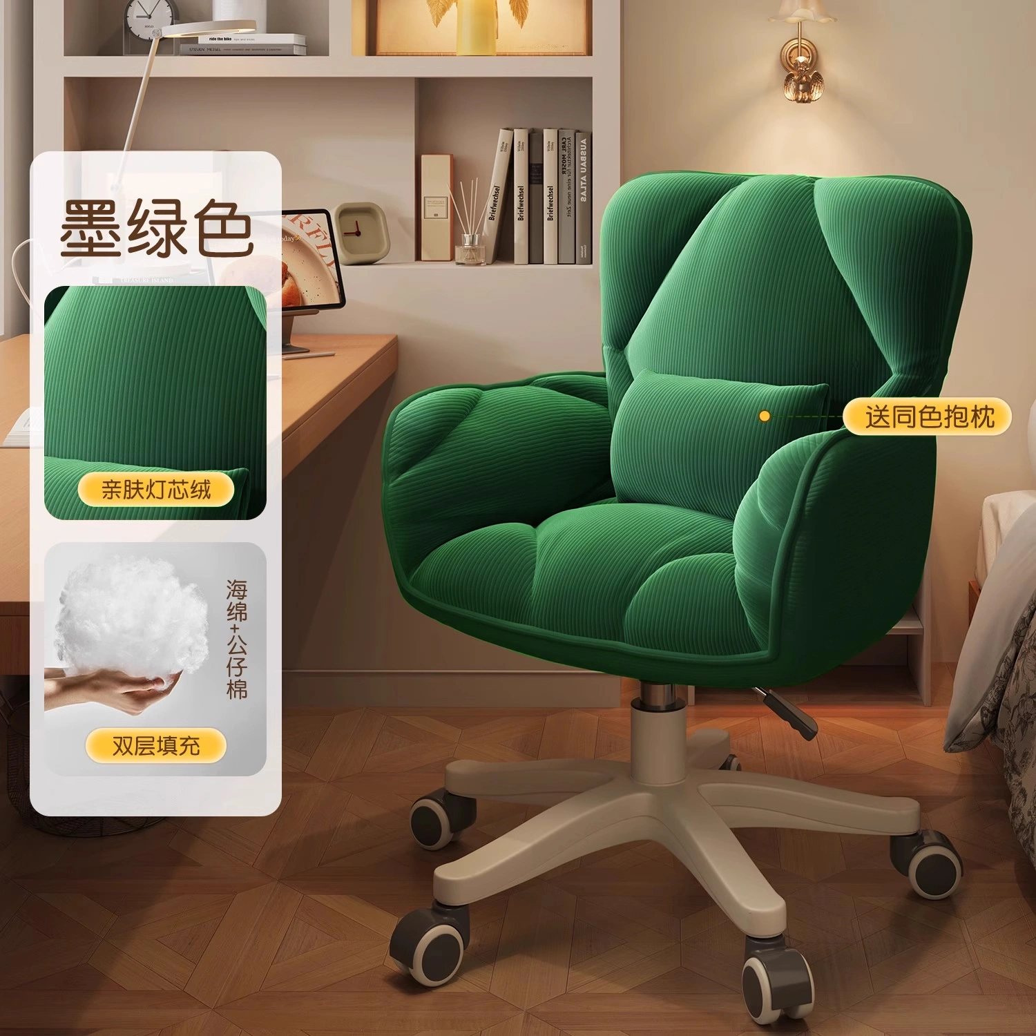 Computer Chair, Home Comfortable Backrest Desk Chair, Student Dormitory Chair, Office Chair, Bedroom Adjustable Swivel Chair, Makeup Chair