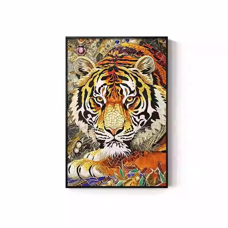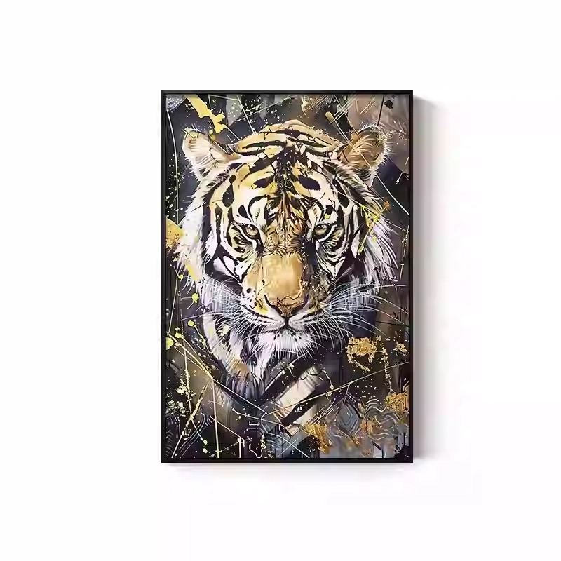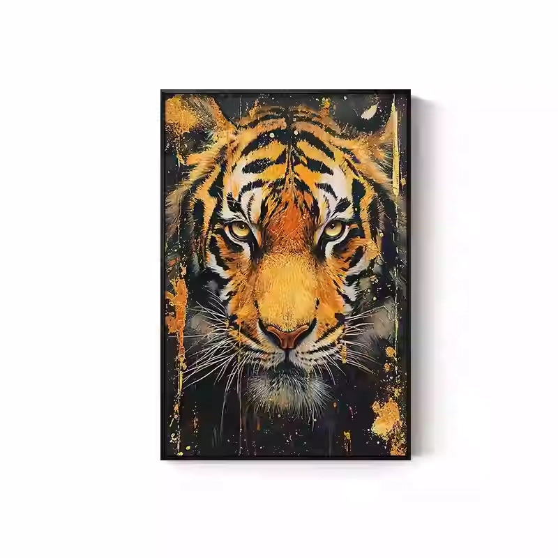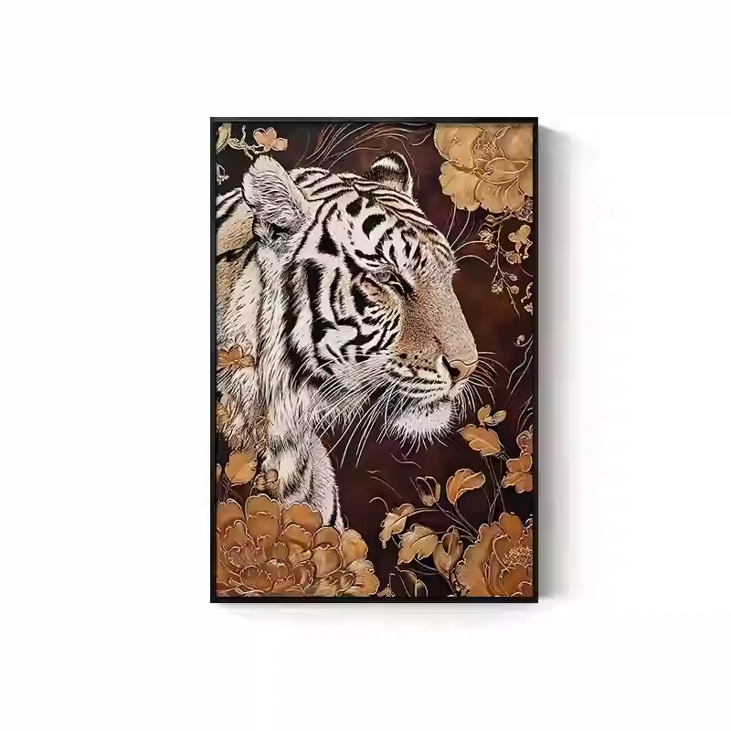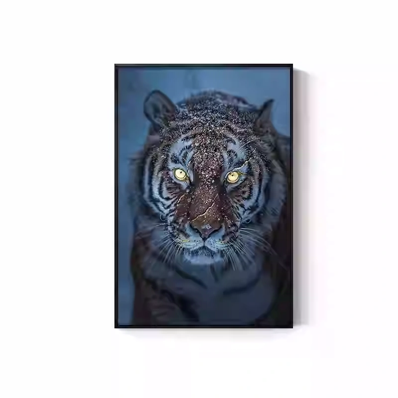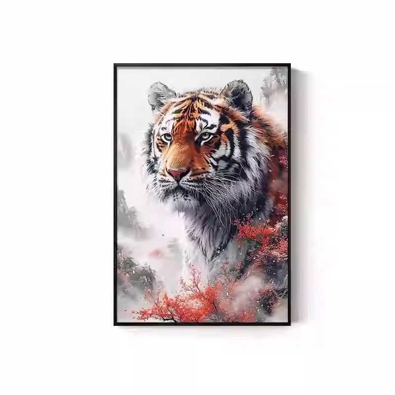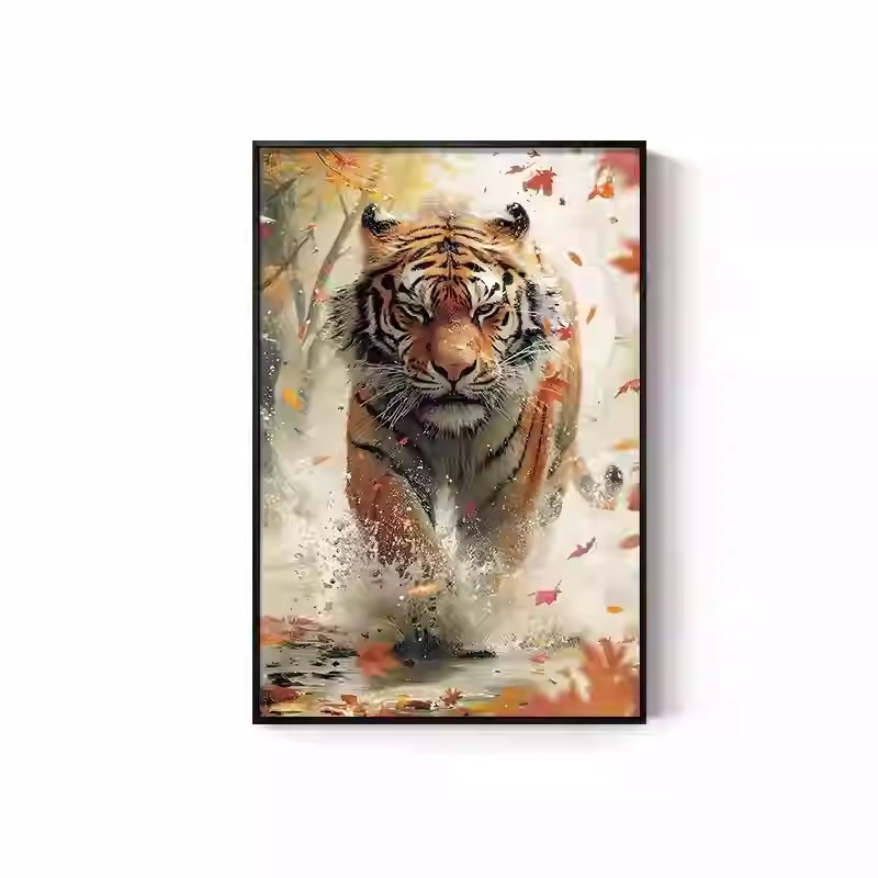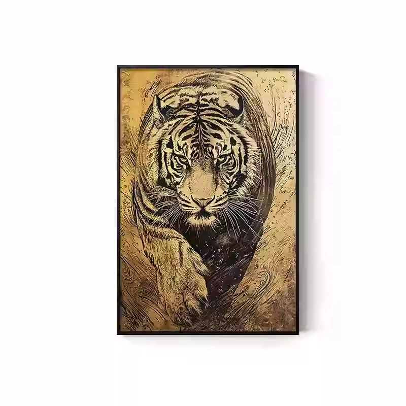 Tiger Painting Hanging on the Wall, Picture of a Fierce Tiger Descending from the Mountain, Lion Climbing the Mountain, Oil Painting, Office Mural, Entrance Hall, Living Room, Tiger Head Decorative Painting