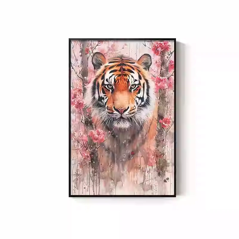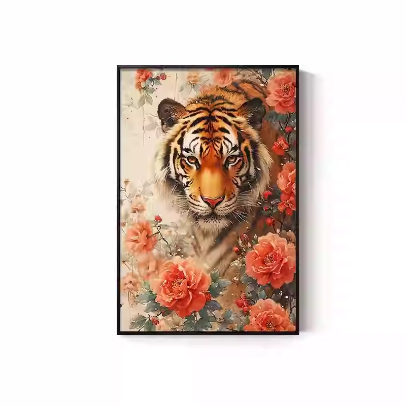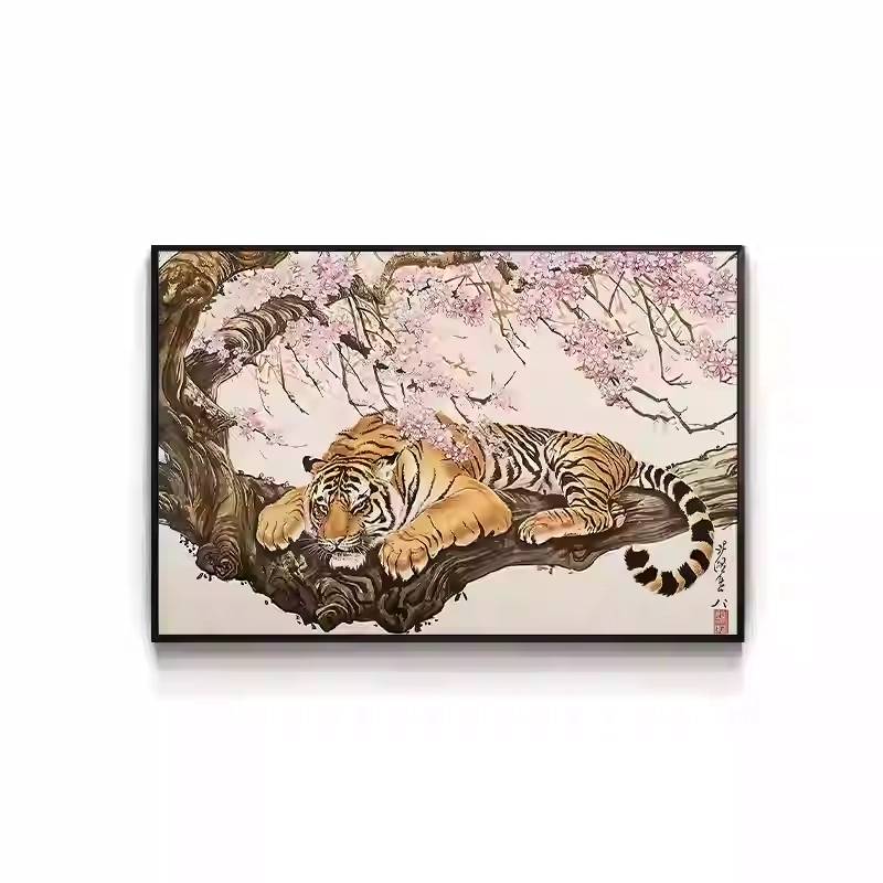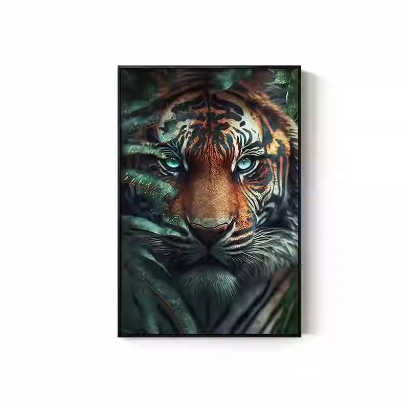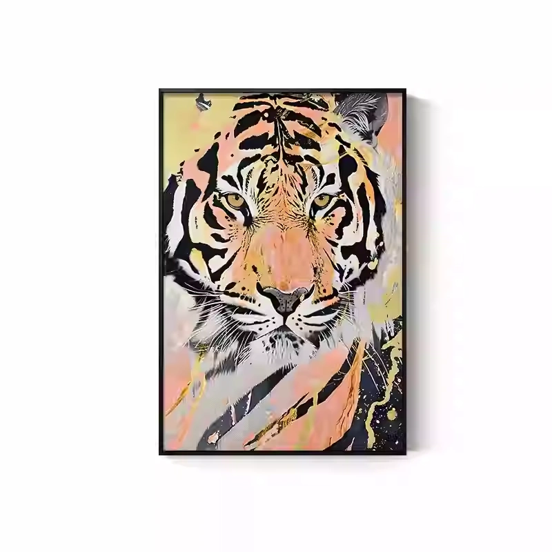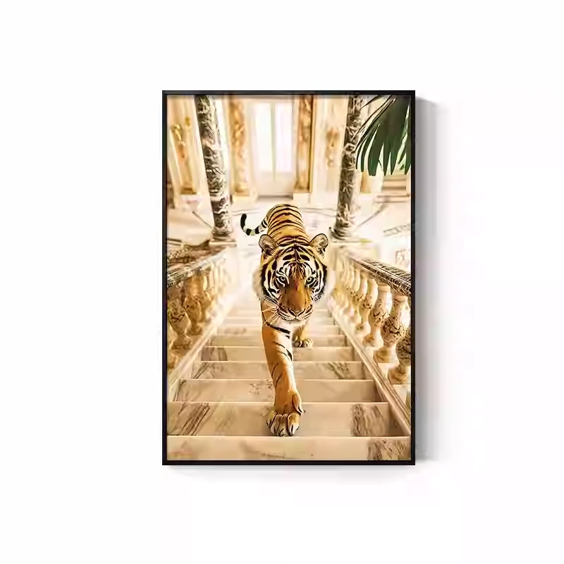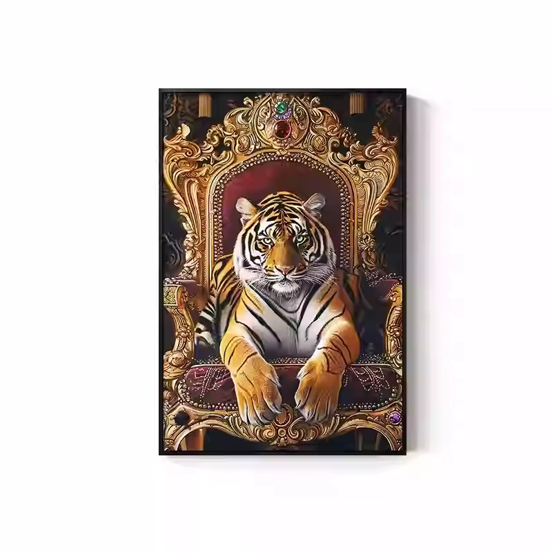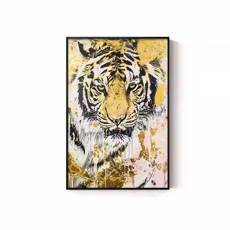 Tiger Painting Hanging on the Wall, Picture of a Fierce Tiger Descending from the Mountain, Lion Climbing the Mountain, Oil Painting, Office Mural, Entrance Hall, Living Room, Tiger Head Decorative Painting